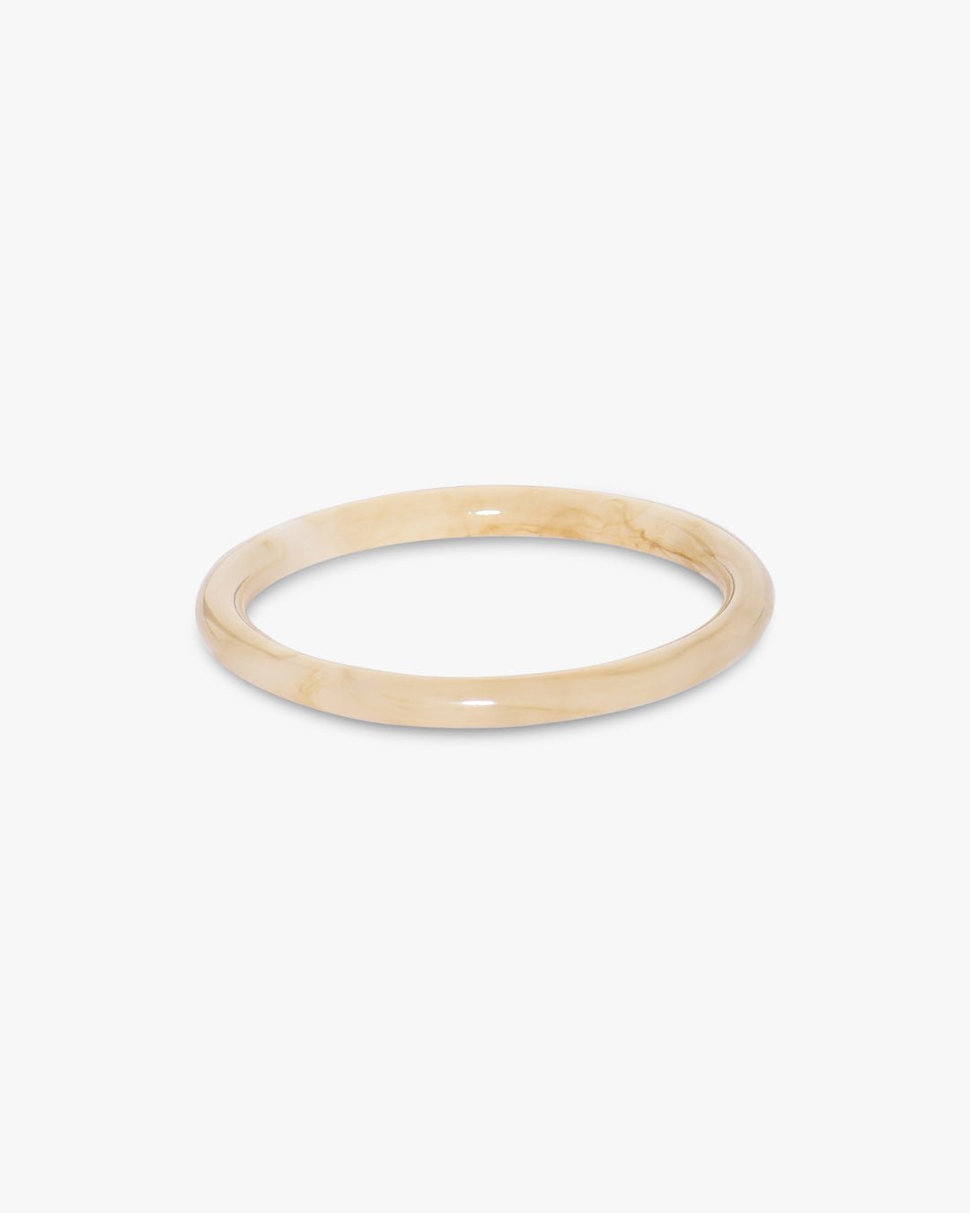 Et enkelt og raffineret armbånd med slankt design og blød, organisk finish. Det glatte look og swirl-effekten i materialet giver et elegant udtryk, der passer perfekt til både minimalistiske hverdagsstyles og mere pyntede outfits.
