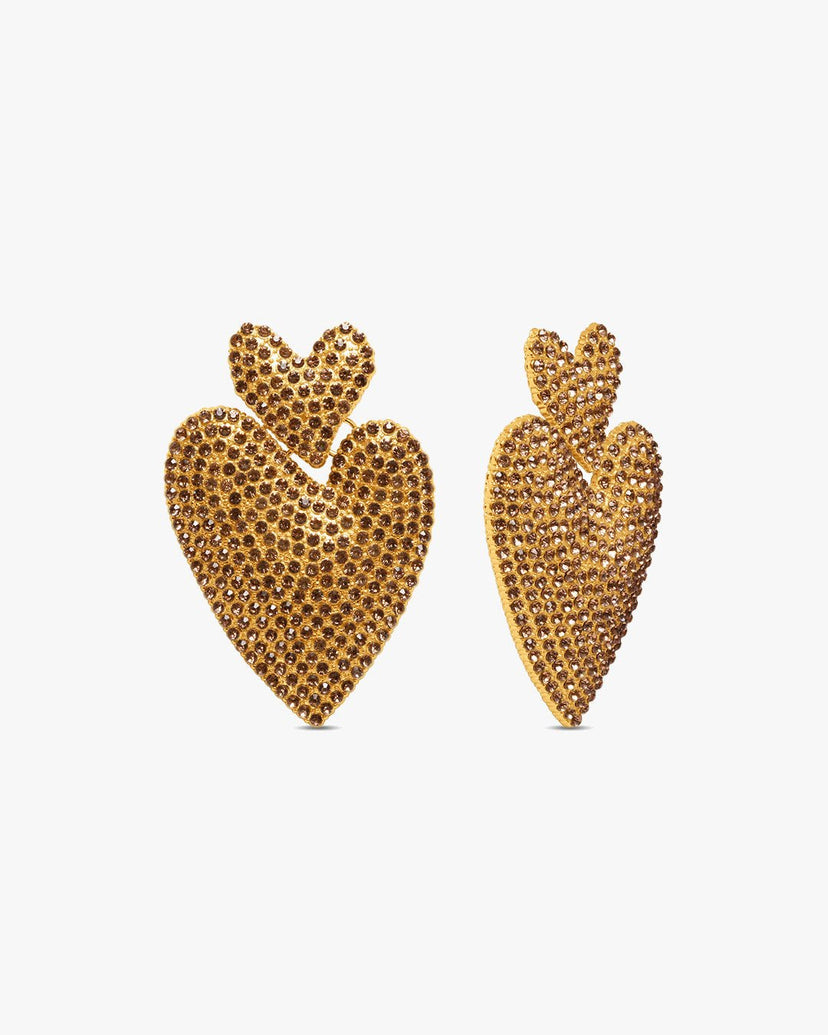 Kendra Rhinestone Heart Earring - Gold Plated