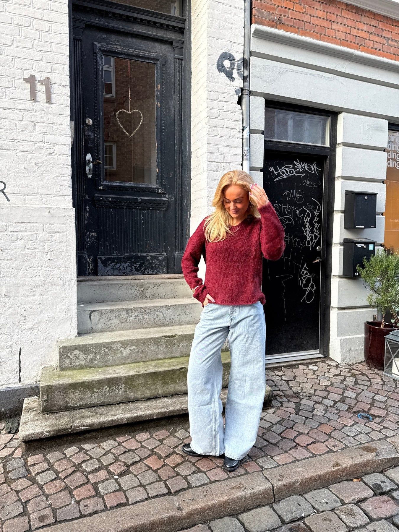 Modellen er 175 cm høj og bruger størrelse M.