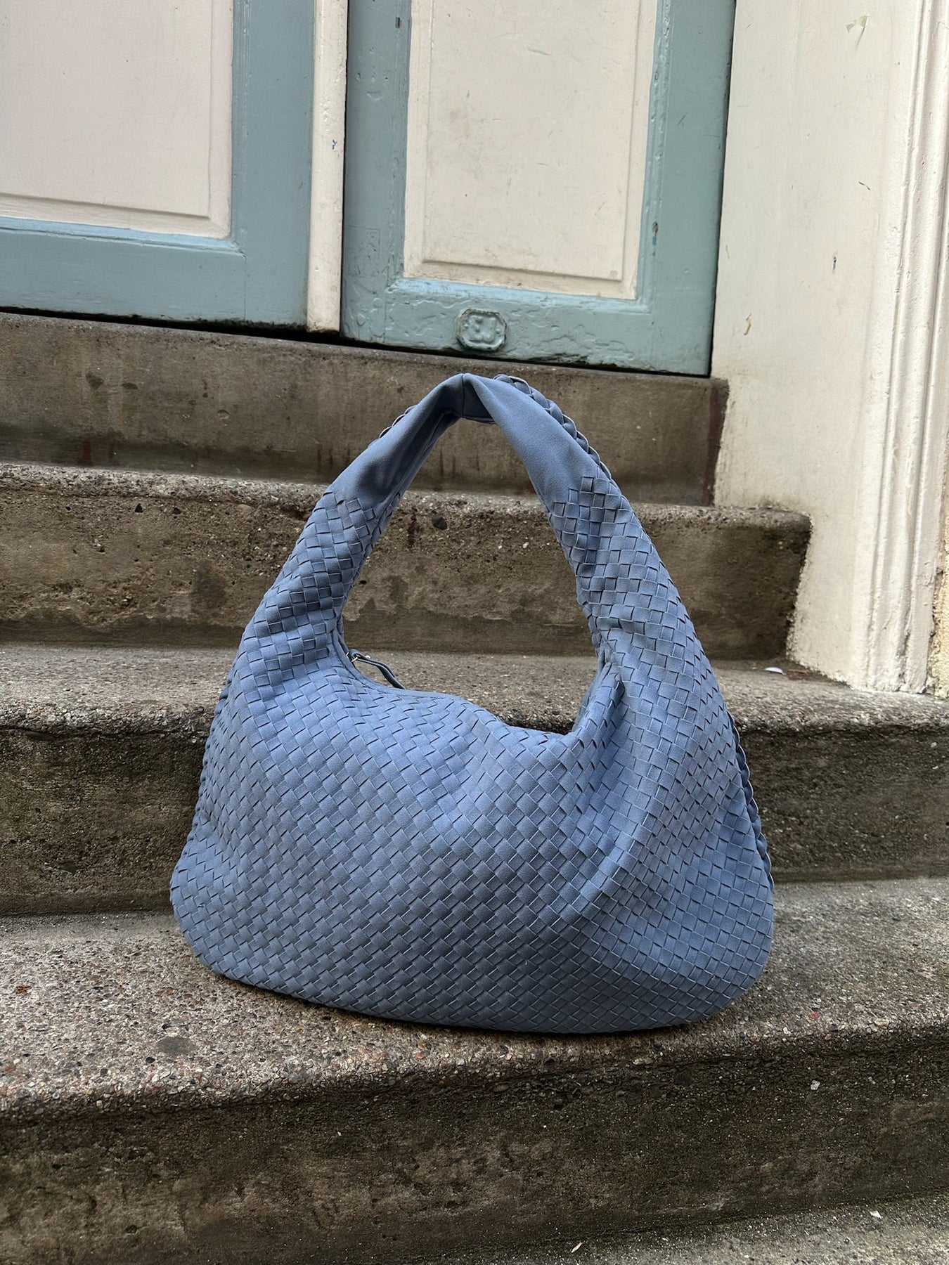 Vores smukke Charlotte Bag er en flettet skuldertaske. Tasken har et stort rum i midten med en lynlåslomme. Inde i tasken er to mindre rum med lynlås, og en stor åben lomme.