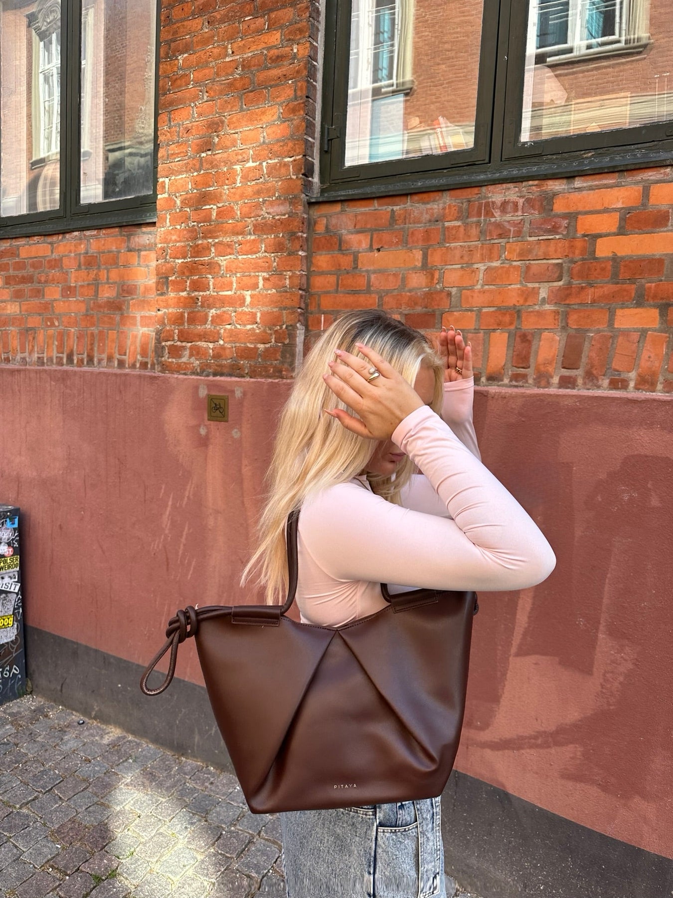 Celina Bag er den perfekte everyday bag, da der kan være en computer i tasken og alle ens andre hverdags essentials. Tasken lukkes i toppen med en knap og har ét stort rum. Tasken har et tidsløst design og har de fineste elegante detaljer i form af knude på siderne og et fold på både for og bag.