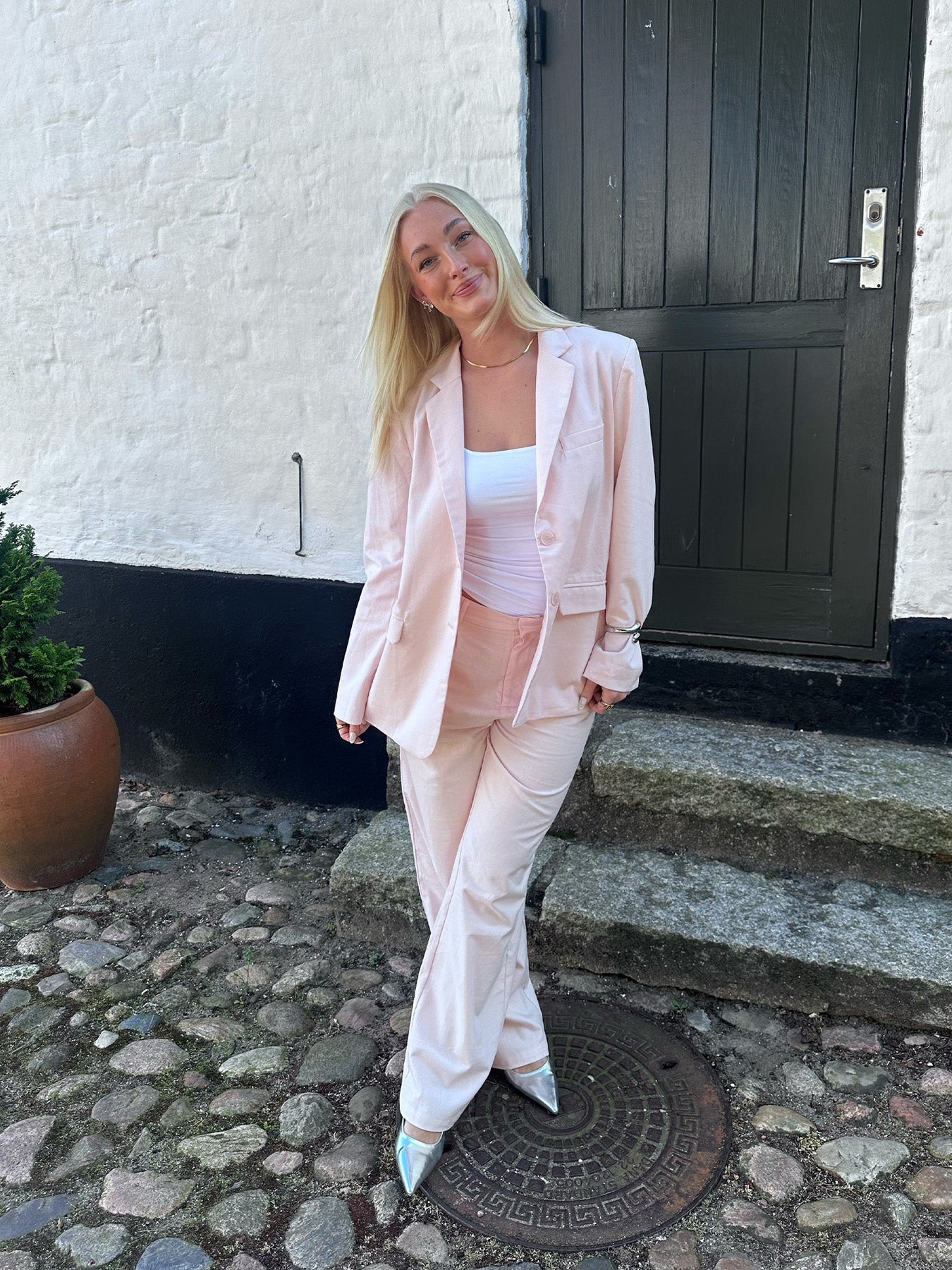 Perfekte til både hverdag og fest – style dem med en skarp skjorte for et feminint business-outfit, eller brug dem med en simpel top og sneakers for et afslappet, men stilfuldt sæt. Den lyserøde nuance tilføjer et frisk pust og et strejf af farve, uden at gå på kompromis med alsidighed.