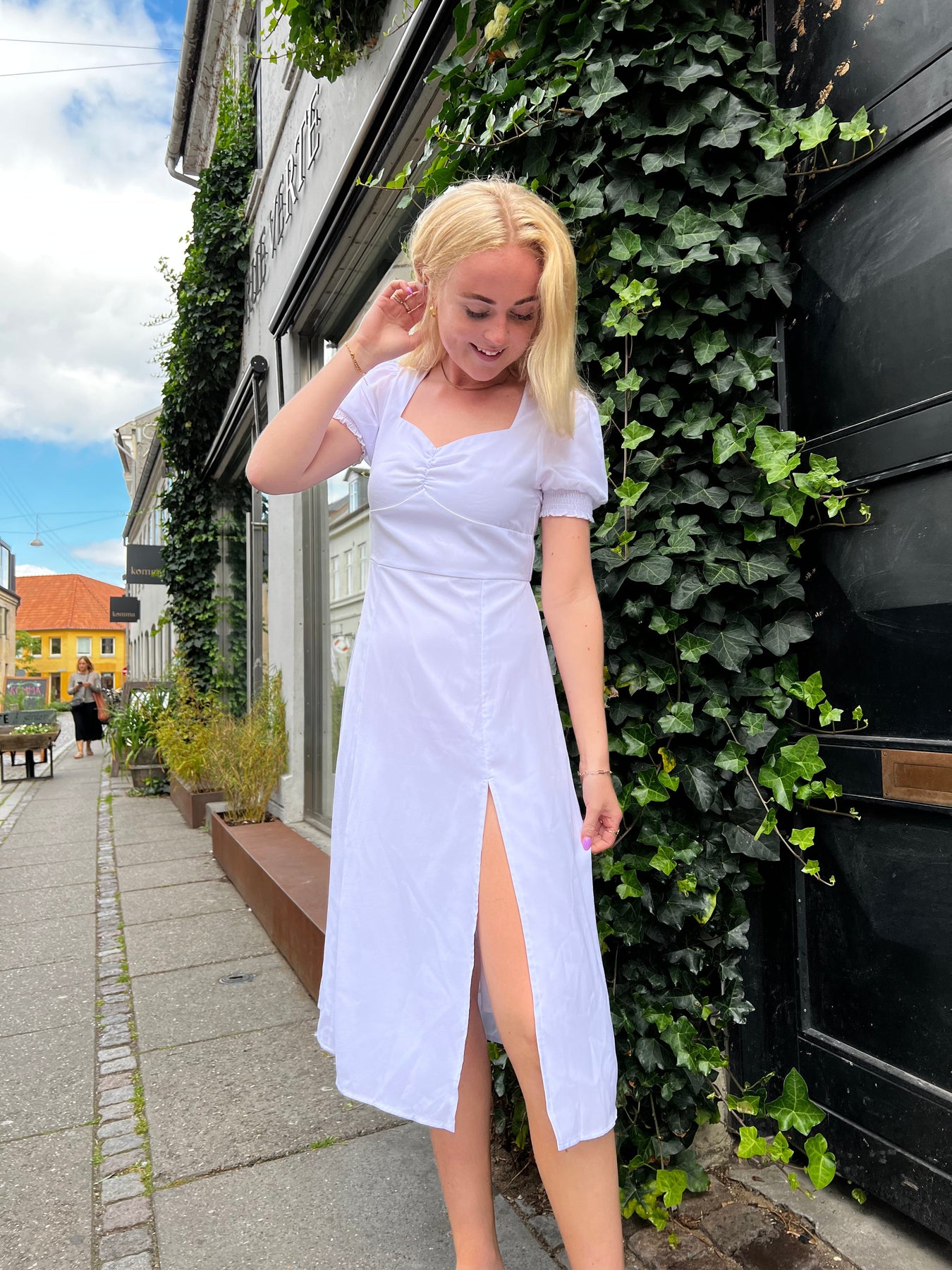 En let sommerkjole med slids i højre side.