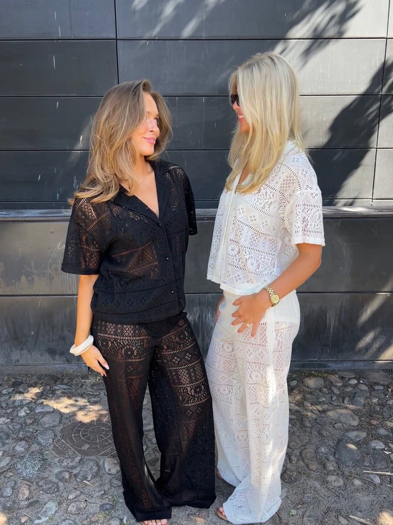 Den sorte hæklet skjorte er essensen af ubesværet sommerstil. Med sin gennemhullede struktur, korte ærmer og klassiske krave tilføjer den både kant og femininitet til dit outfit. Brug den åben over badetøjet på stranden eller knappet til et sofistikeret og luftigt hverdagslook.