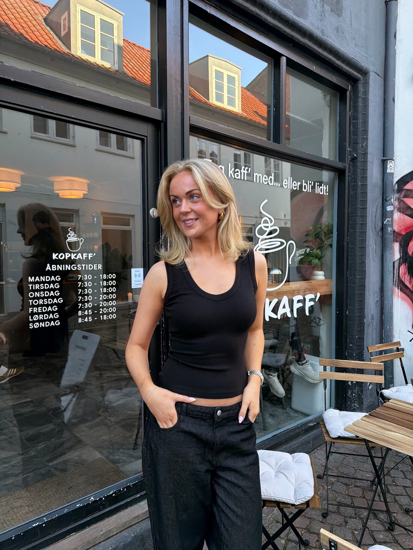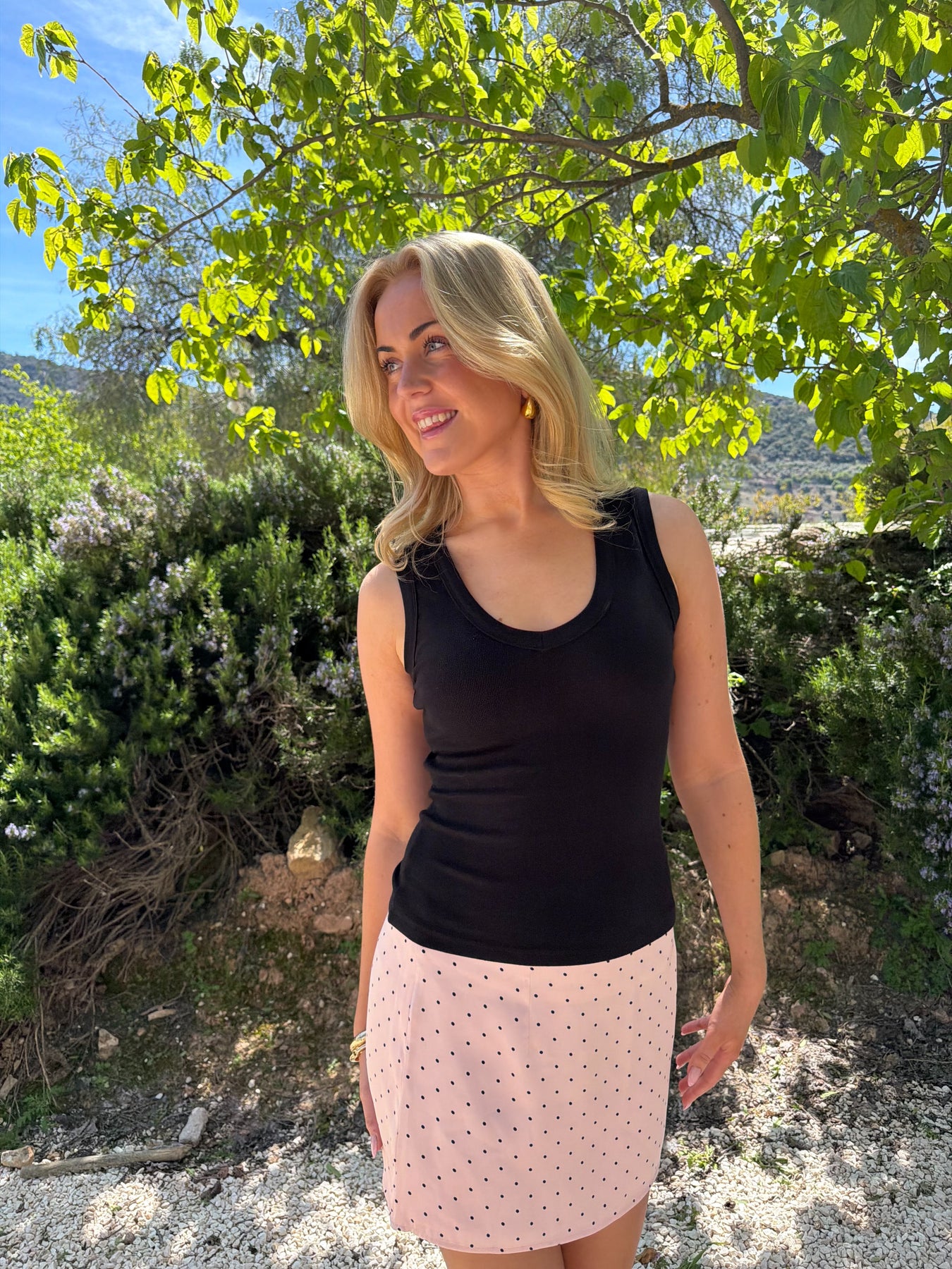 Toppen er ideel både til hverdagsbrug og mere sammensatte outfits – brug den alene på varme dage eller som et lag under en skjorte eller blazer for et mere sofistikeret udtryk. Et tidløst basisitem, der nemt kan styles op eller ned alt efter anledning.
