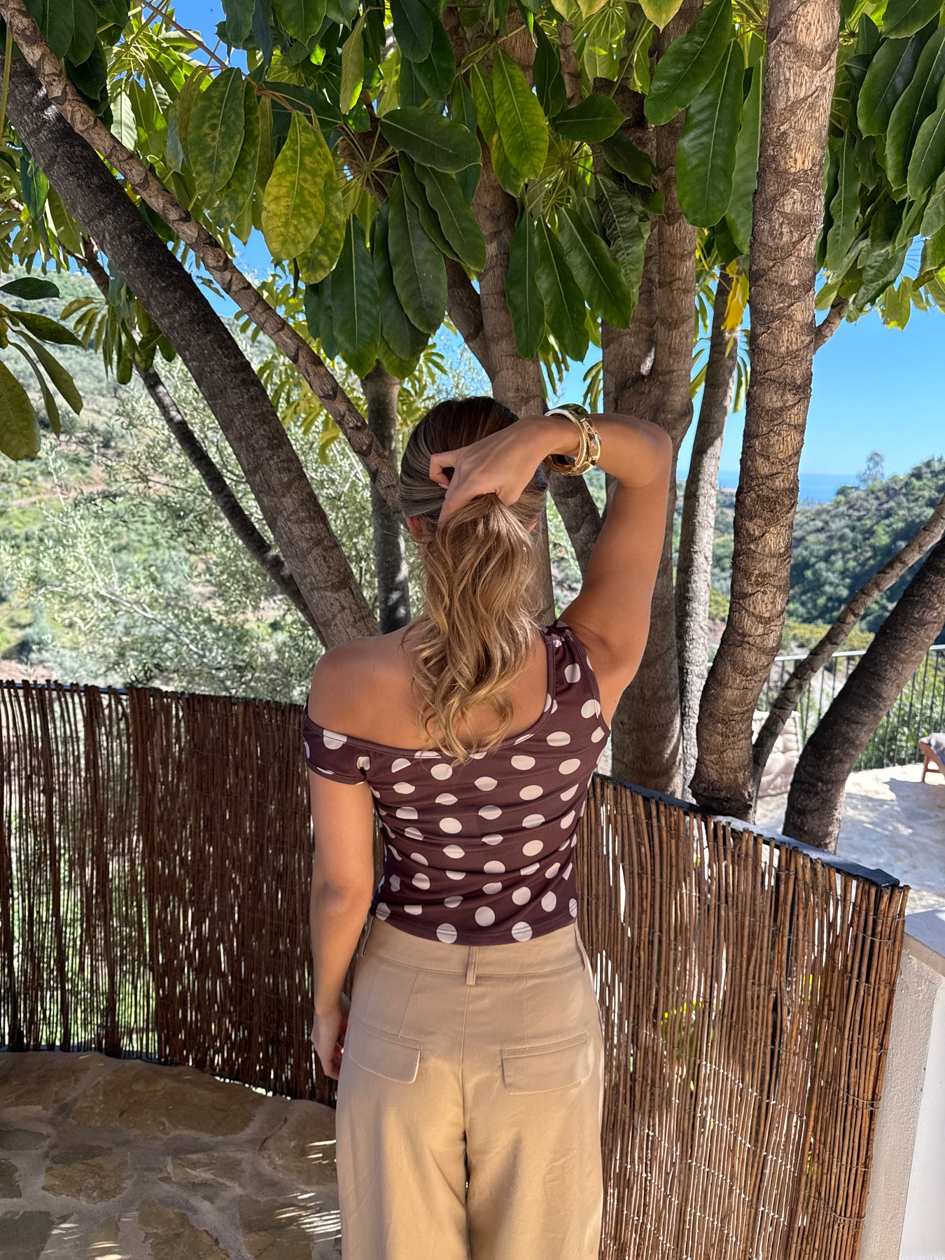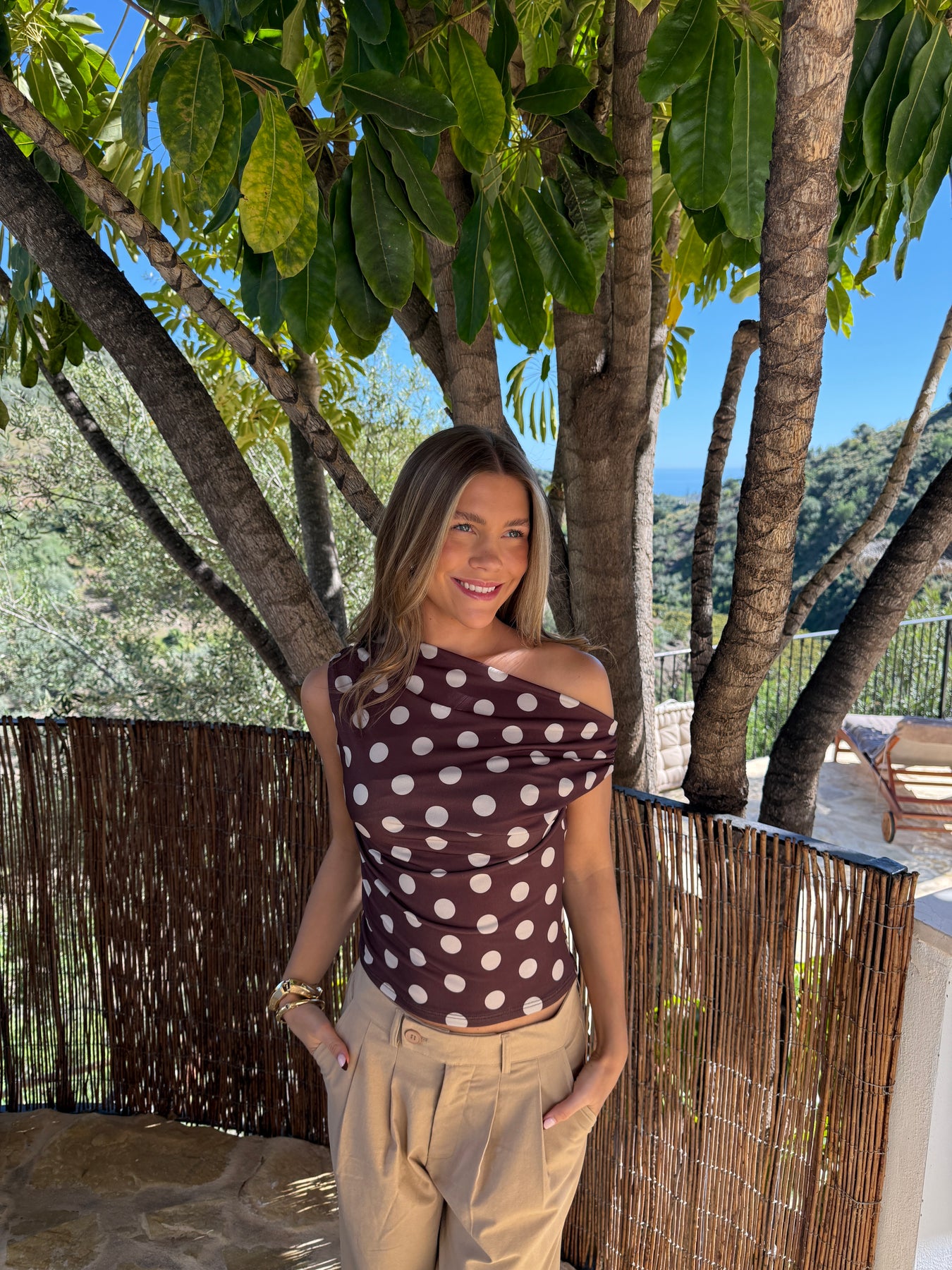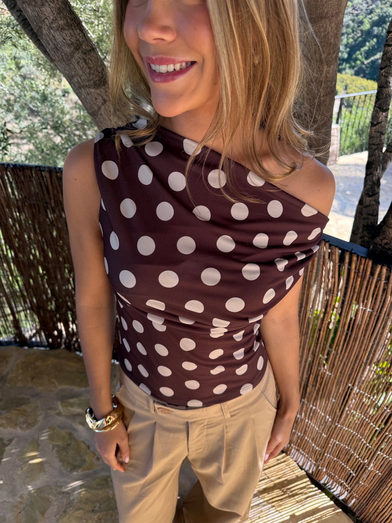 Sandy Drop Shoulder Top - Dark Brown/Beige Dot