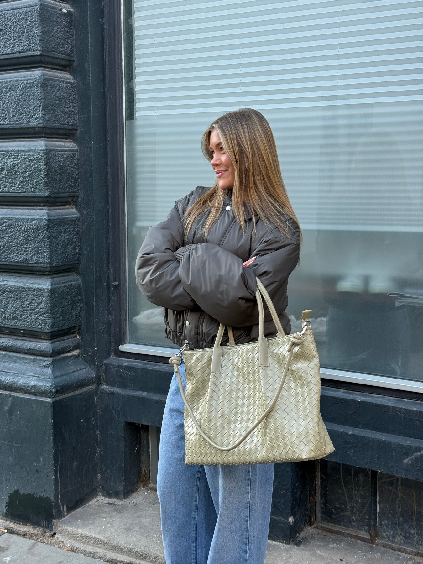 Denne rummelige taske kombinerer et elegant fletmønster med et tidløst design, der passer til både hverdag og arbejde. De dobbelte hanke og aftagelige skulderrem giver fleksibel brug, uanset om du er på farten eller til møde. En praktisk og stilfuld taske, der nemt rummer både essentials og lidt ekstra.