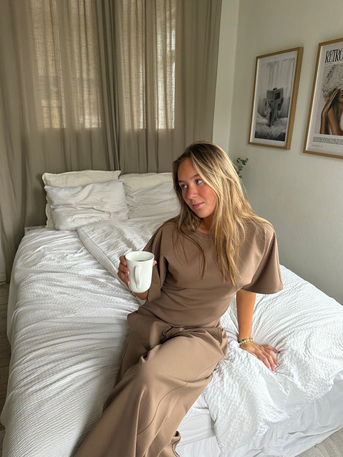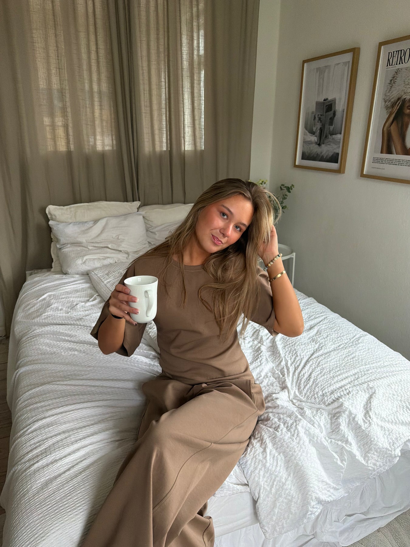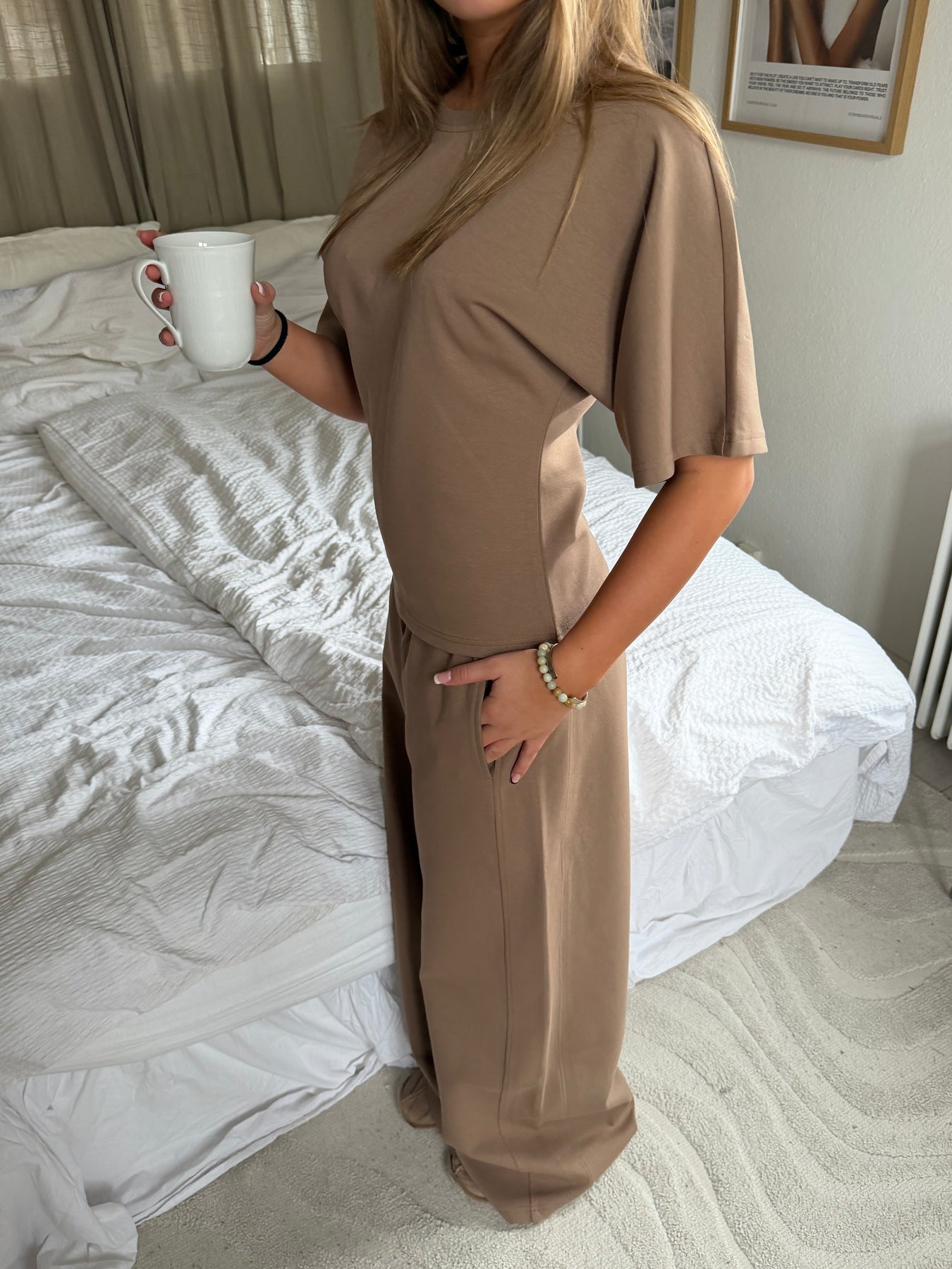 Denne bluse er designet med fokus på komfort og stil. Den har en afslappet pasform, som giver masser af bevægelsesfrihed, og de brede, korte ærmer tilføjer et moderne og luftigt udtryk. Blusen er fremstillet i et blødt, behageligt materiale, der gør den ideel til både afslappede hverdage og hyggelige stunder derhjemme.