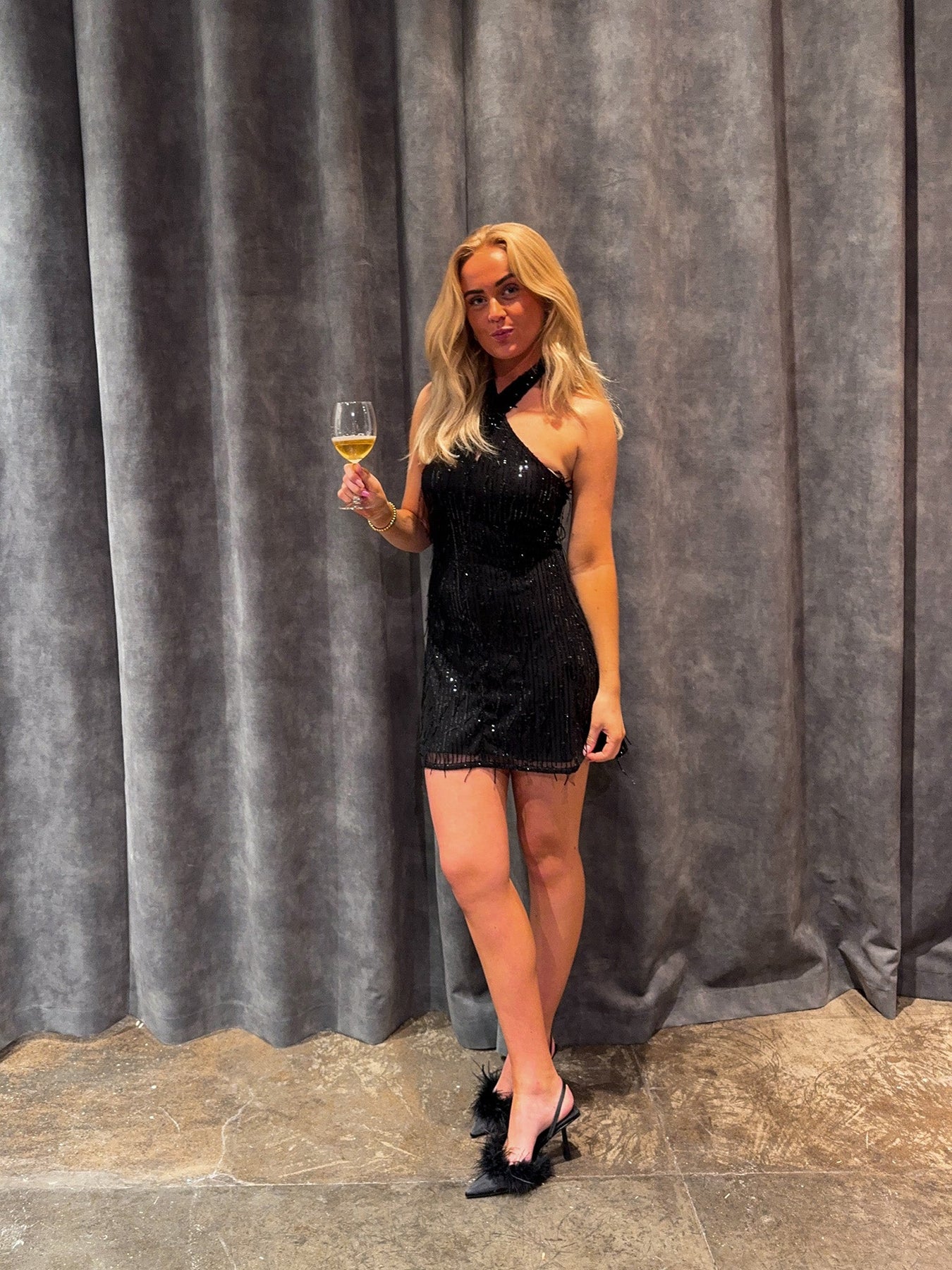 Få fingrene i den ultimative nytårskjole, der kombinerer glimmer med elegance! Denne røde kjole er dækket af funklende palietter, der giver et strålende look og fanger lyset fra alle vinkler – perfekt til at fejre nytåret eller en anden festlig anledning.