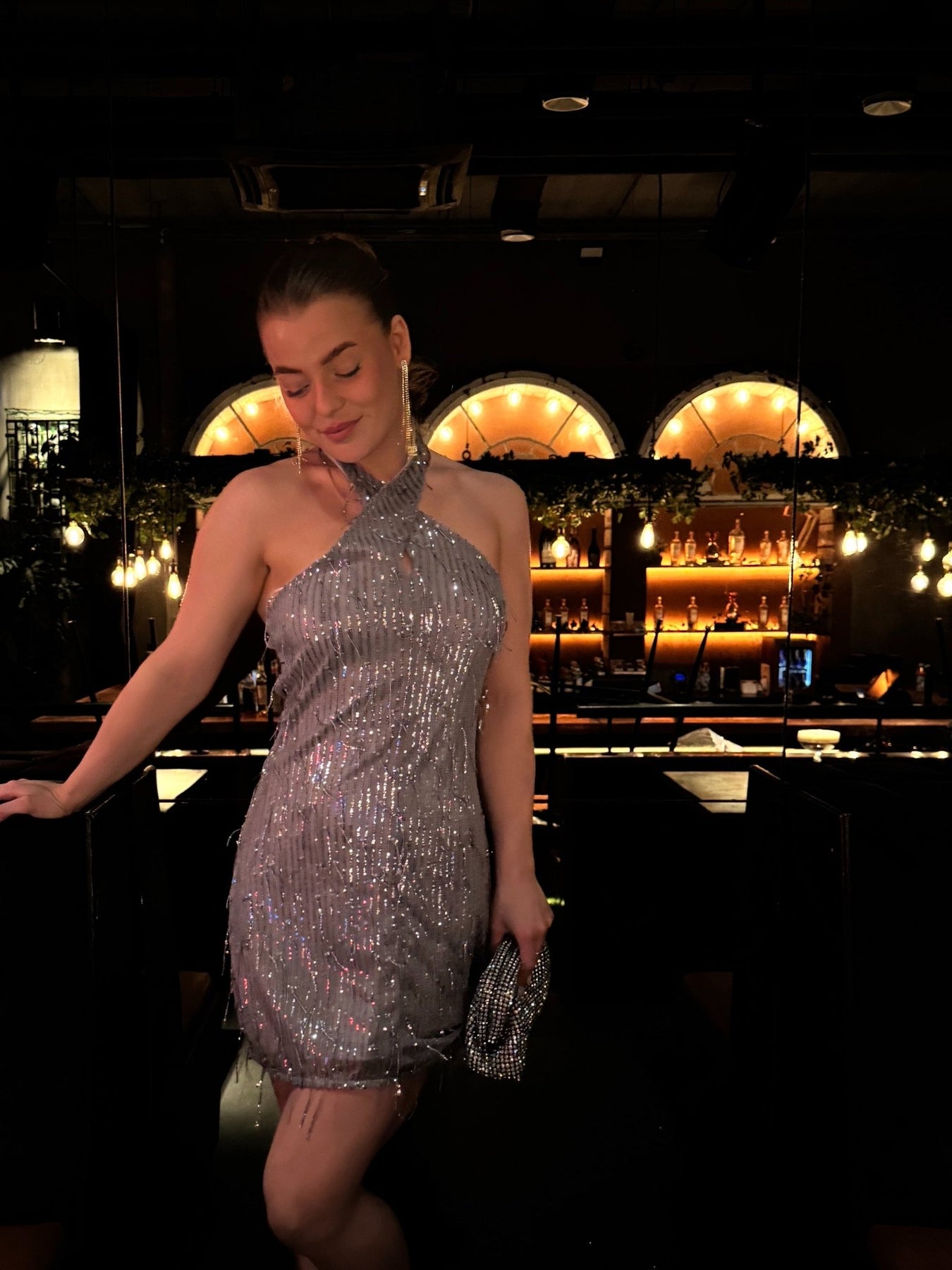 Oplev den ultimative nytårskjole, der kombinerer glimmer med elegance! Denne røde kjole er dækket af funklende palietter, der giver et strålende look og fanger lyset fra alle vinkler – perfekt til at fejre nytåret eller en anden festlig anledning.