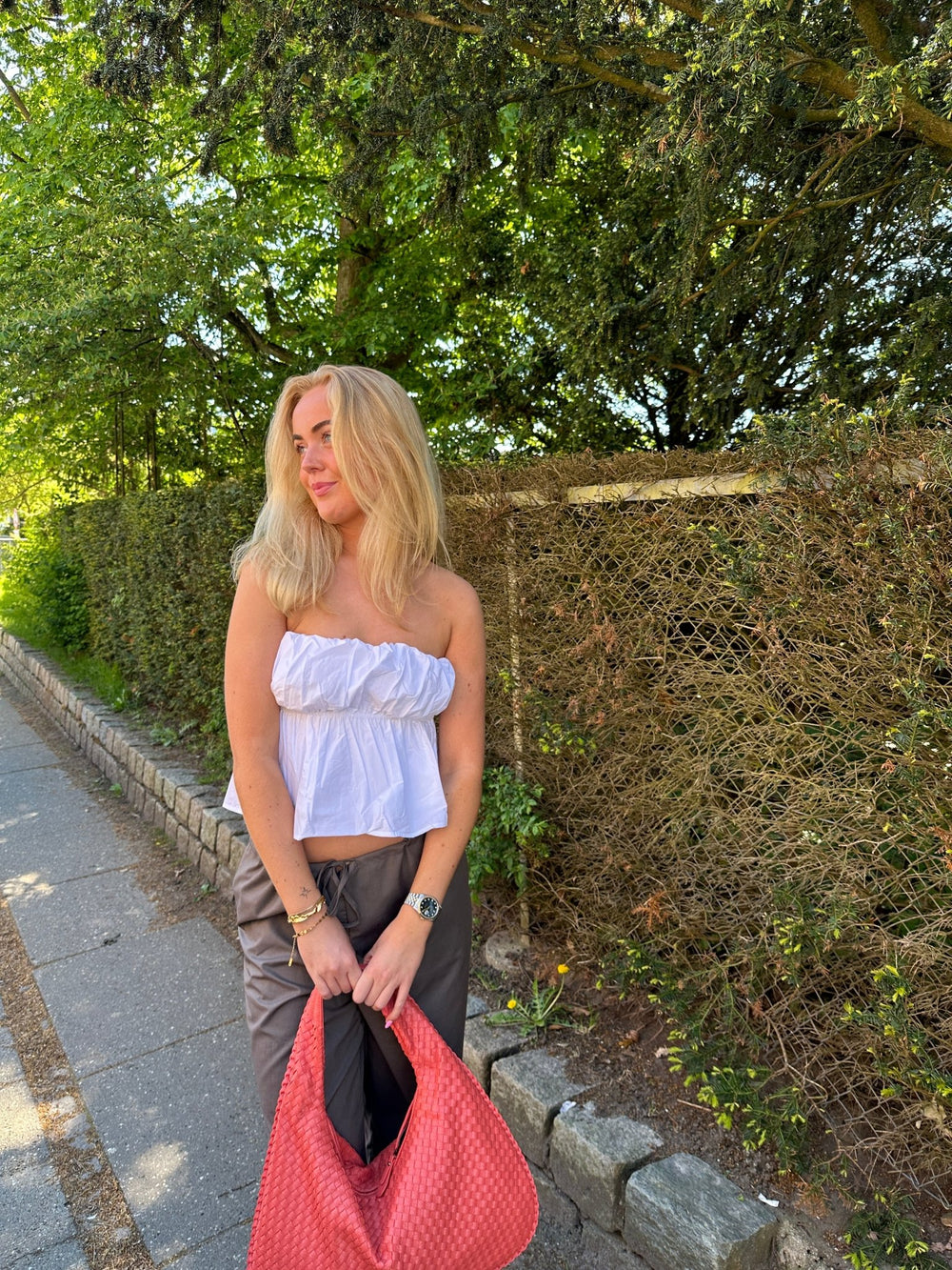 Our beautiful Charlotte Bag is a braided shoulder bag. The bag has a large compartment in the middle with a zipped pocket. Inside the bag are two smaller compartments with a zip, and a large open pocket.