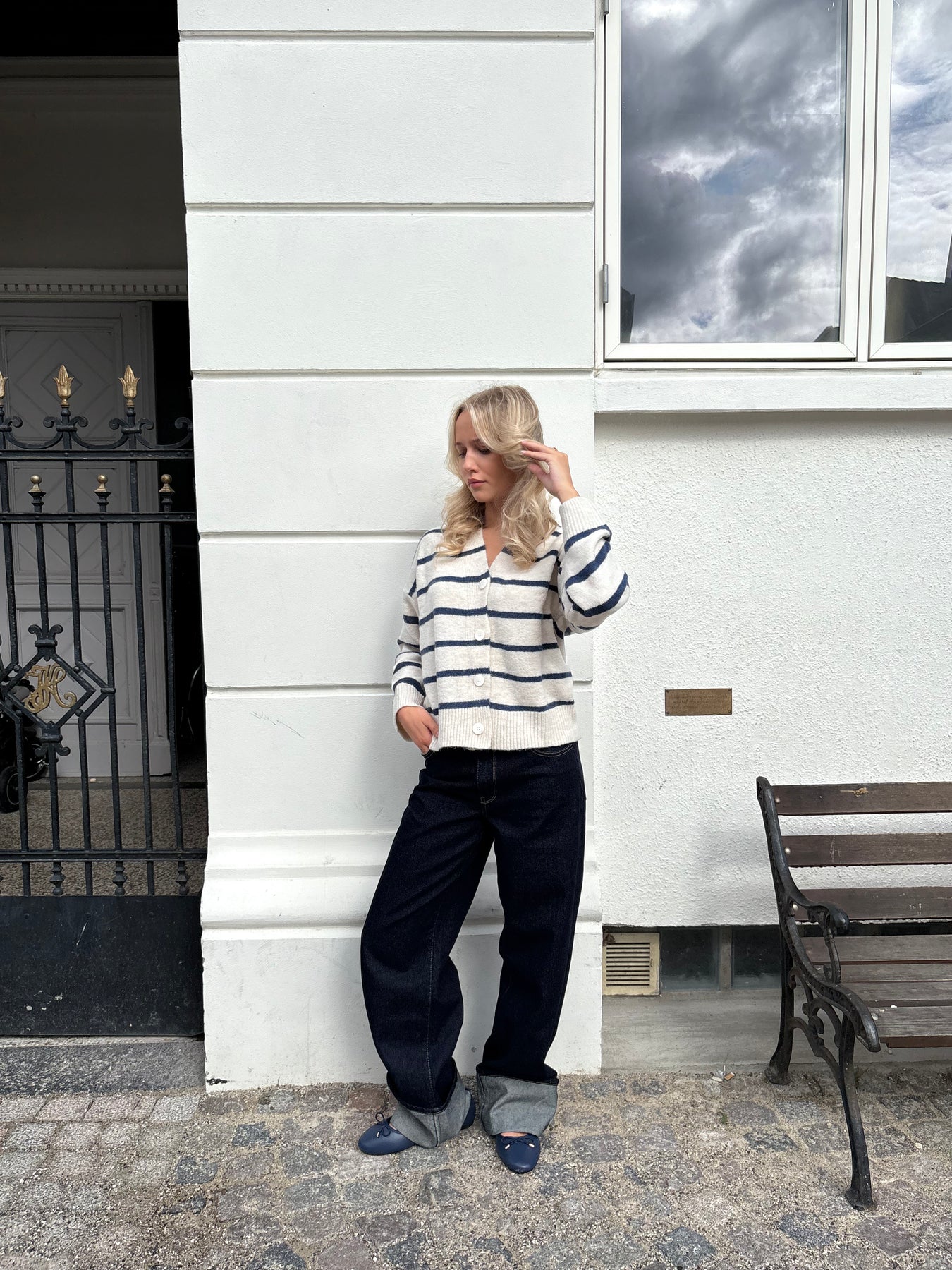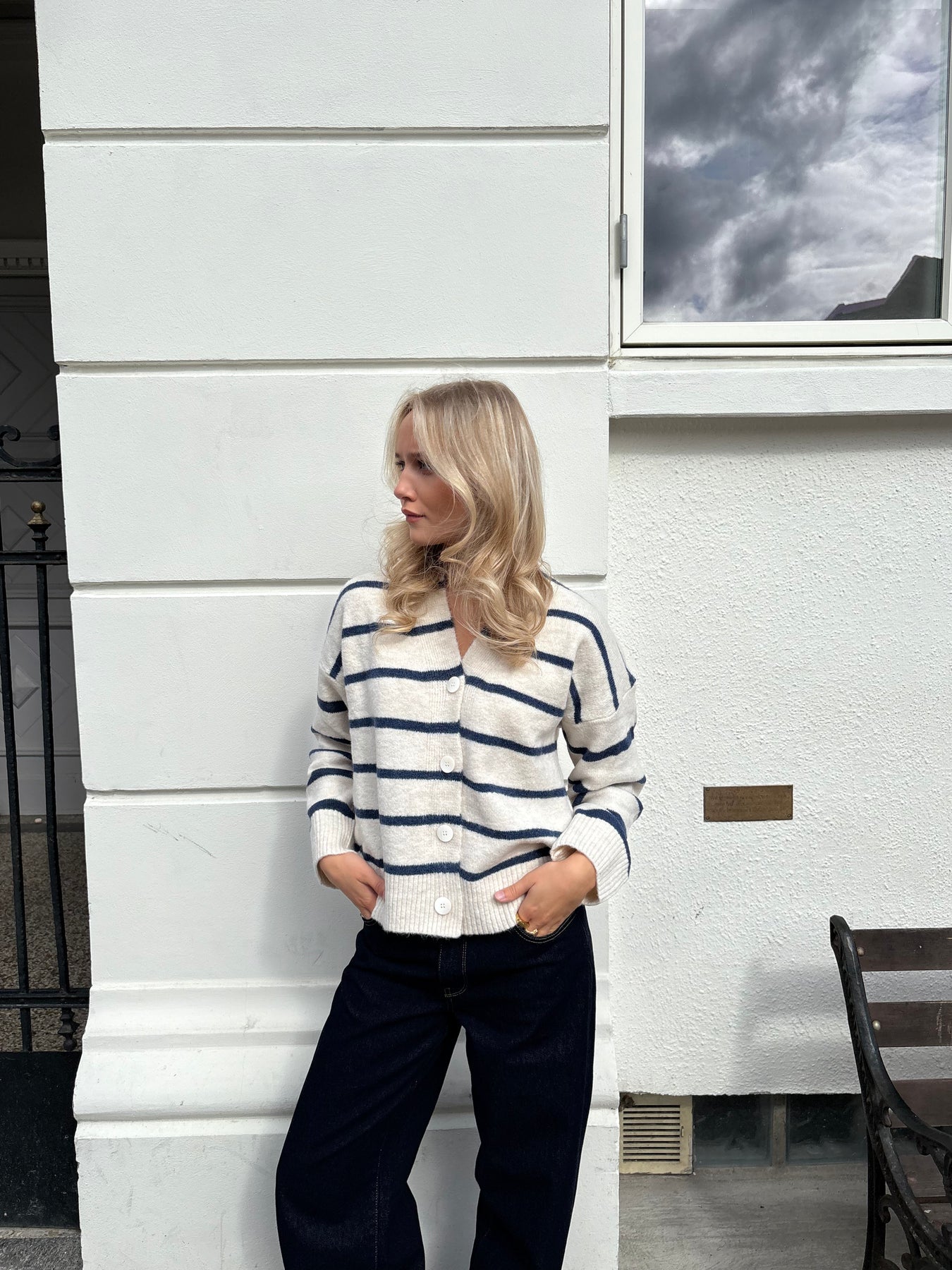 Frida Stripe Knit Cardigan - Beige/Dark Blue