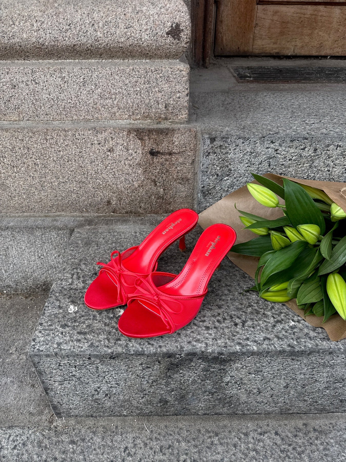 Nellie mules er den ultimative feminine stilet med et delikat og sofistikeret udtryk. Den gennemsigtige rem og fine sløjfedetalje giver et let og luftigt look, mens den elegante hæl løfter hele outfittet – bogstaveligt talt.