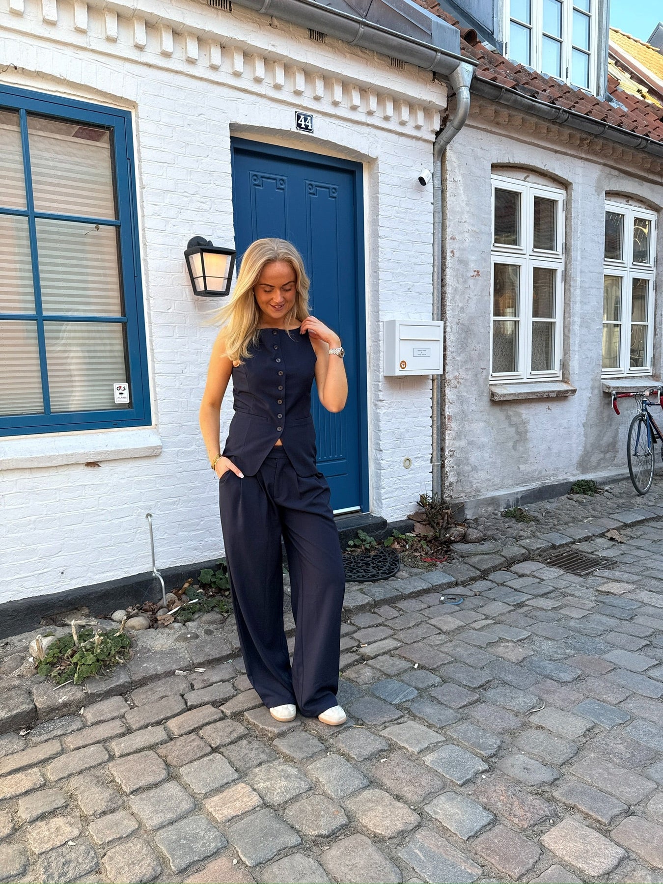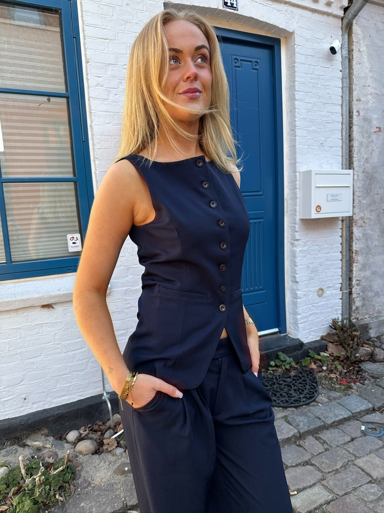 Denne habitvest er den perfekte kombination af elegance og alsidighed. Den er designet i et klassisk og flot look, der passer perfekt til både skole, fest og hverdag. Med sine skarpe linjer og fine detaljer giver den et sofistikeret udtryk, samtidig med at den er super behagelig at have på. Vesten kan nemt styles med både skjorter, t-shirts eller toppe, og dens tidløse design gør, at den aldrig går af mode. Uanset om du skal til fest eller have et smart look til skolen, er denne habitvest det ideelle valg.