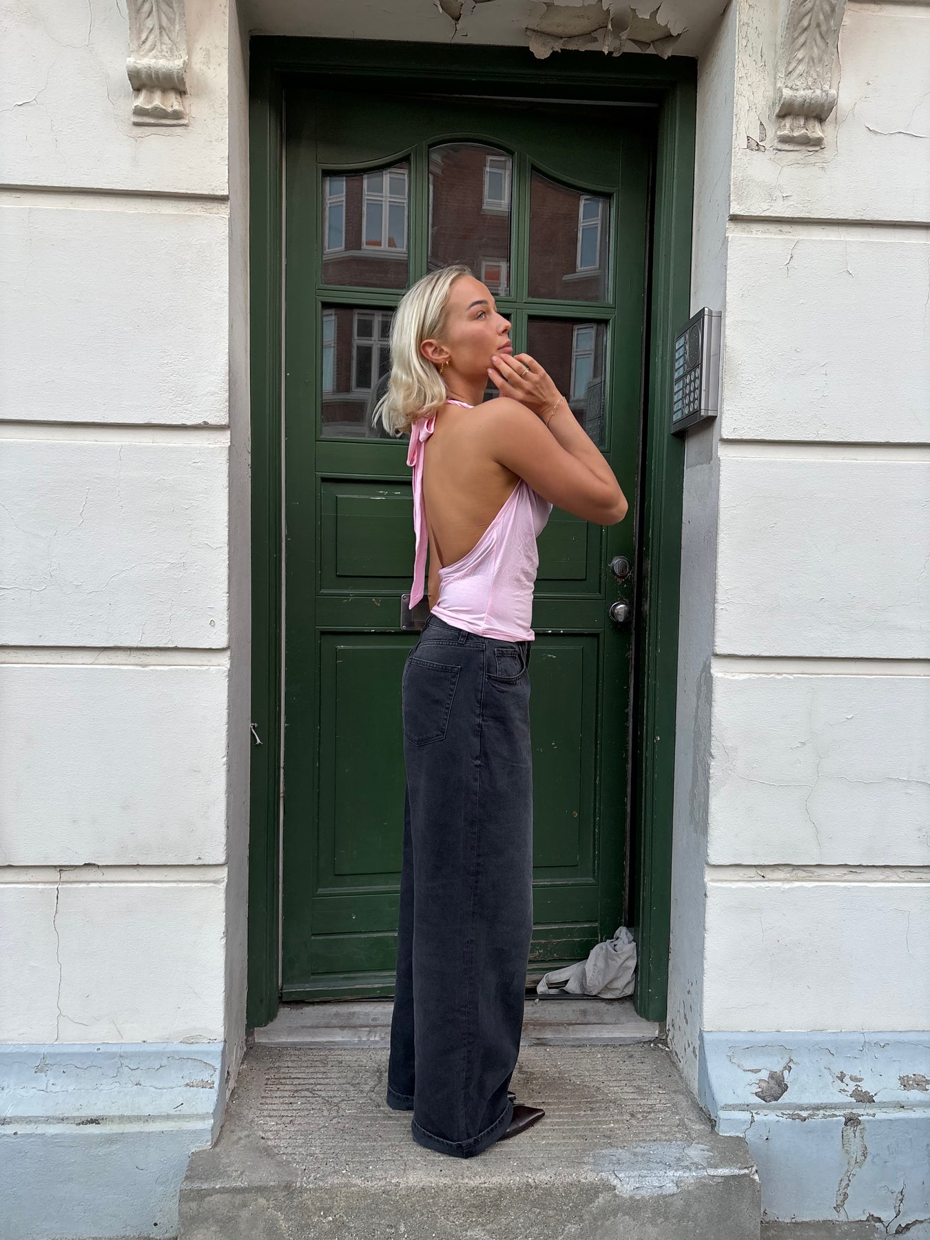 Denne stilfulde halterneck-top kombinerer et flatterende frontdesign med en elegant, åben ryg, der bindes i nakken for et justerbart og feminint fit. Den tætsiddende pasform fremhæver taljen, mens det lette, bløde materiale giver både komfort og et eksklusivt fald. Toppen er perfekt til både hverdag og aftenbrug – style den med jeans for et casual look eller med en nederdel til festlige lejligheder.