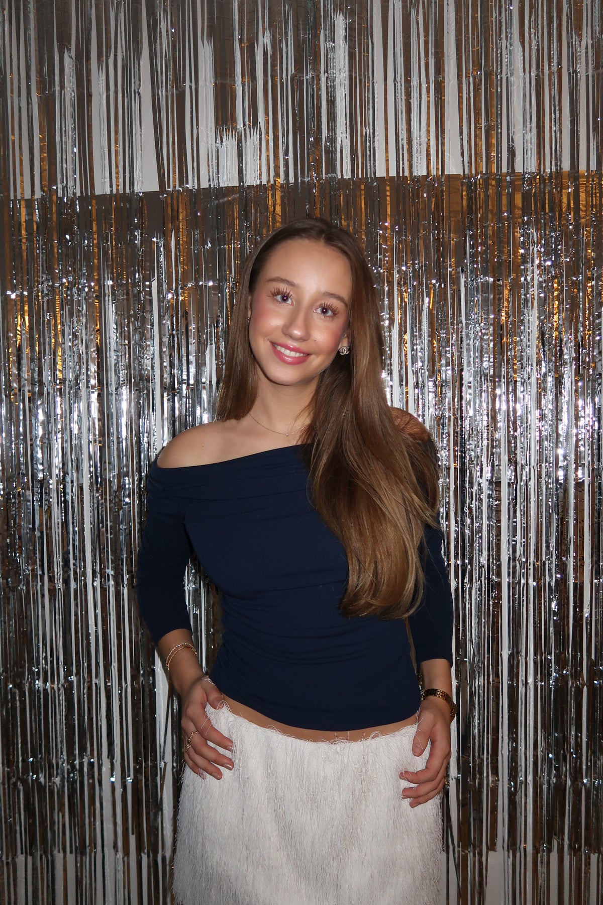 Toppen er fremstillet i et blødt, strækbart materiale, der smyger sig flot om kroppen og giver en komfortabel pasform. Det minimalistiske design med den draperede udskæring bagtil tilføjer et feminint og sofistikeret touch, perfekt til både festlige lejligheder og mere afslappede anledninger.