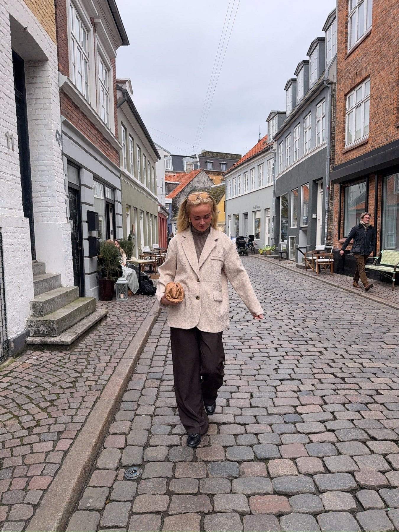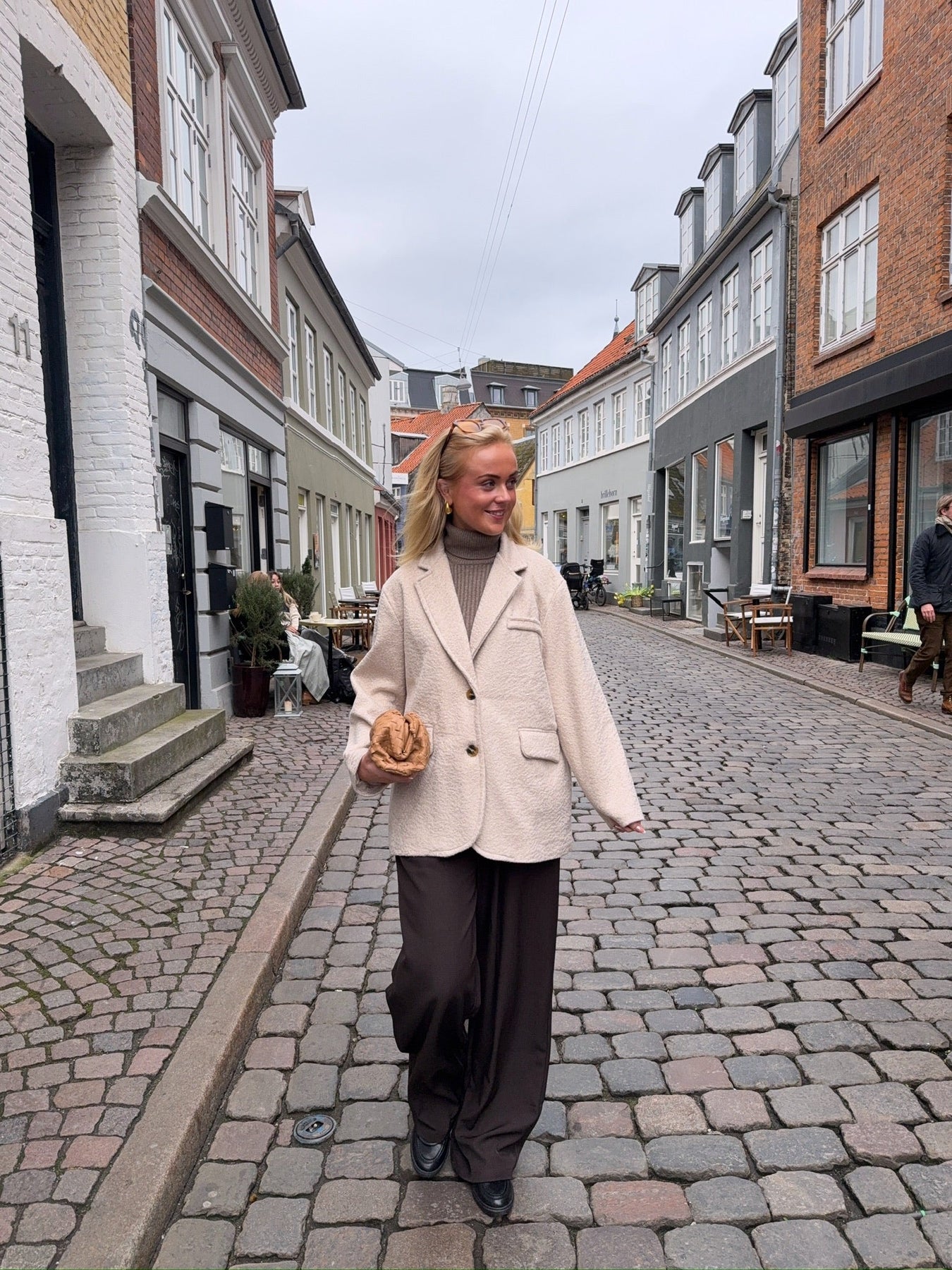 Perfekt som en let jakke, når vejret skifter, eller som en ekstra detalje til dit outfit. Brug den over en t-shirt, skjorte eller kjole – den passer til det meste og løfter hurtigt dit look uden at det bliver for fint.