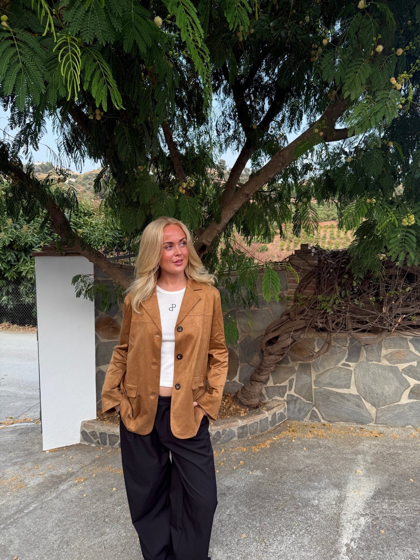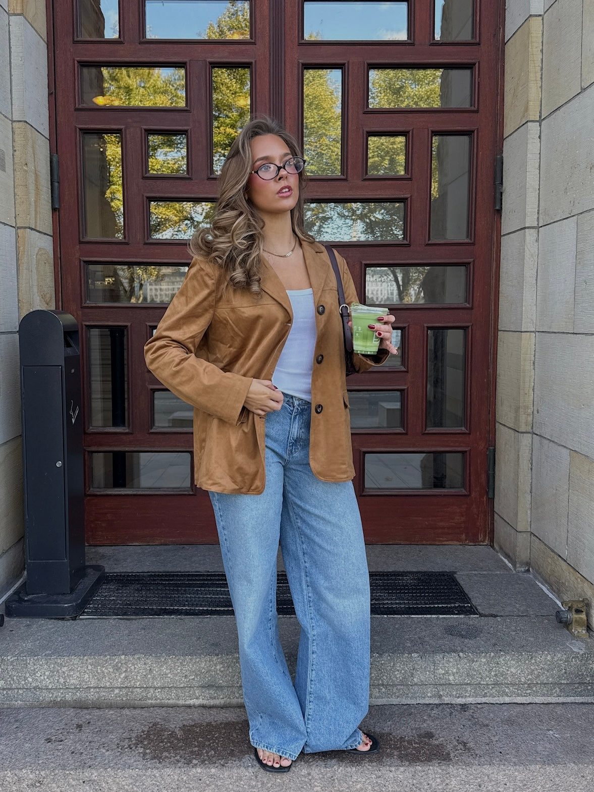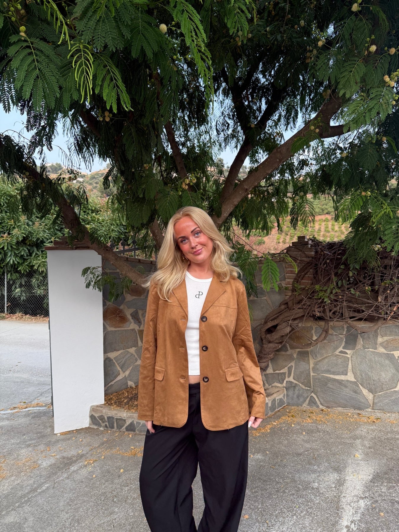 Faux suede blazer med vintage vibe
