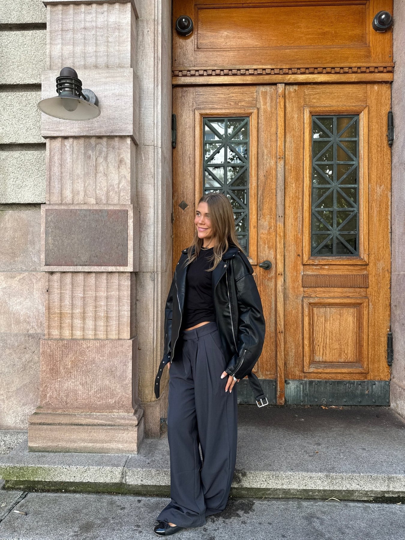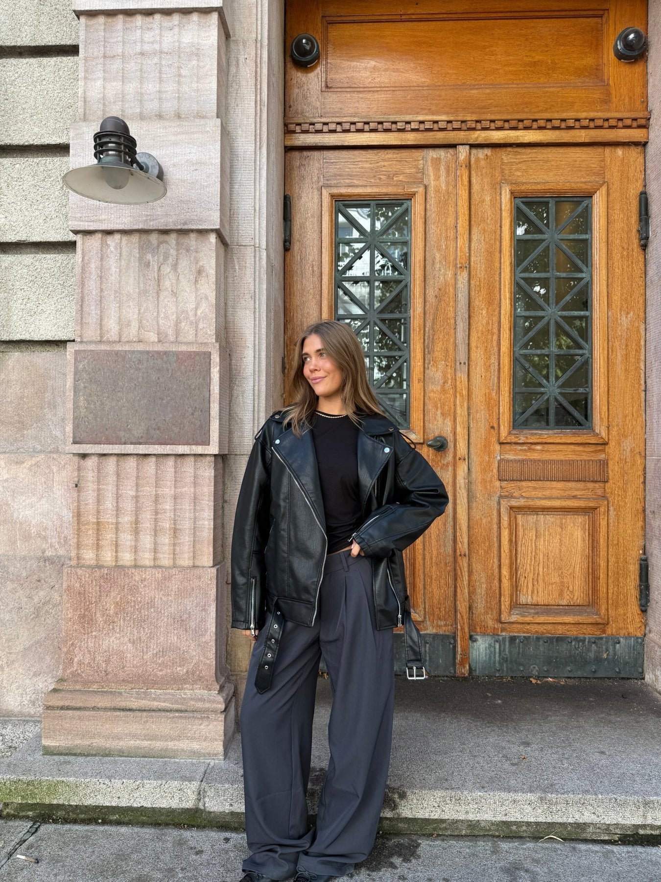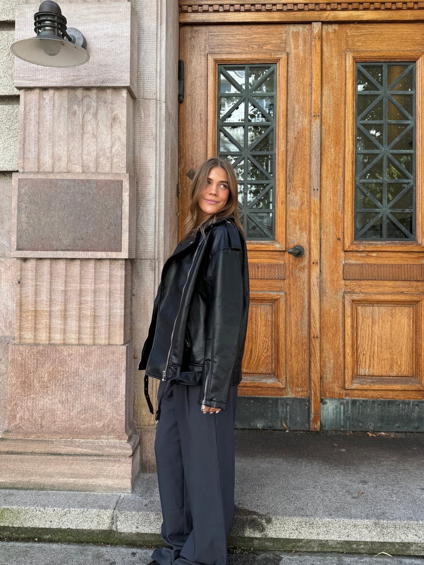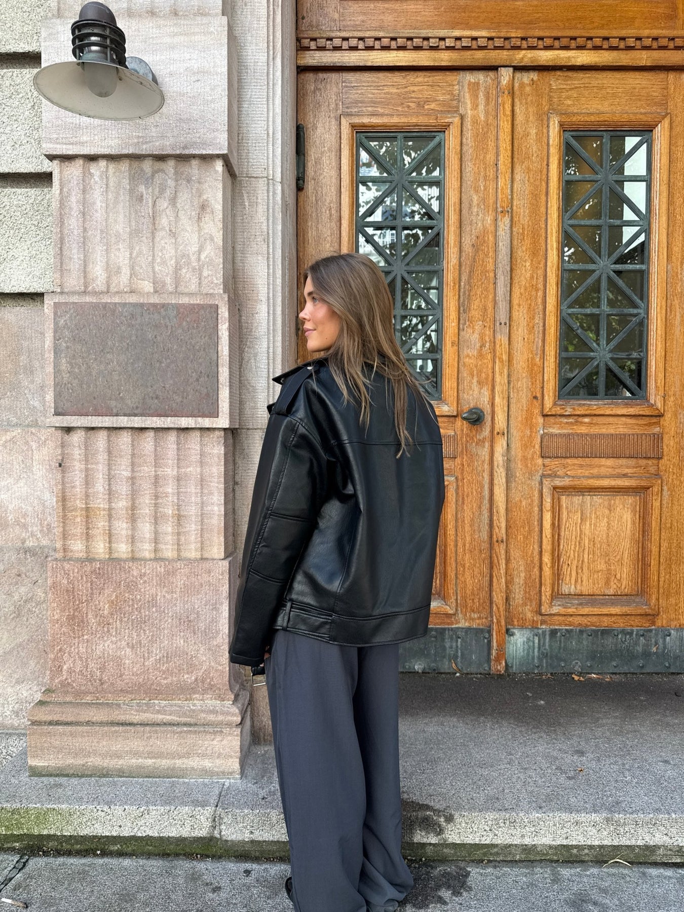 En perfekt overgangsjakke, der let løfter både casual og dressede outfits. Brug den over en enkel top med løse bukser eller kast den over en kjole for et edgy touch.