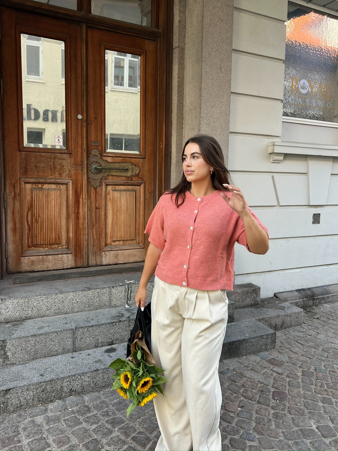 Frida Short Sleeve Cardigan - Coral Blush
