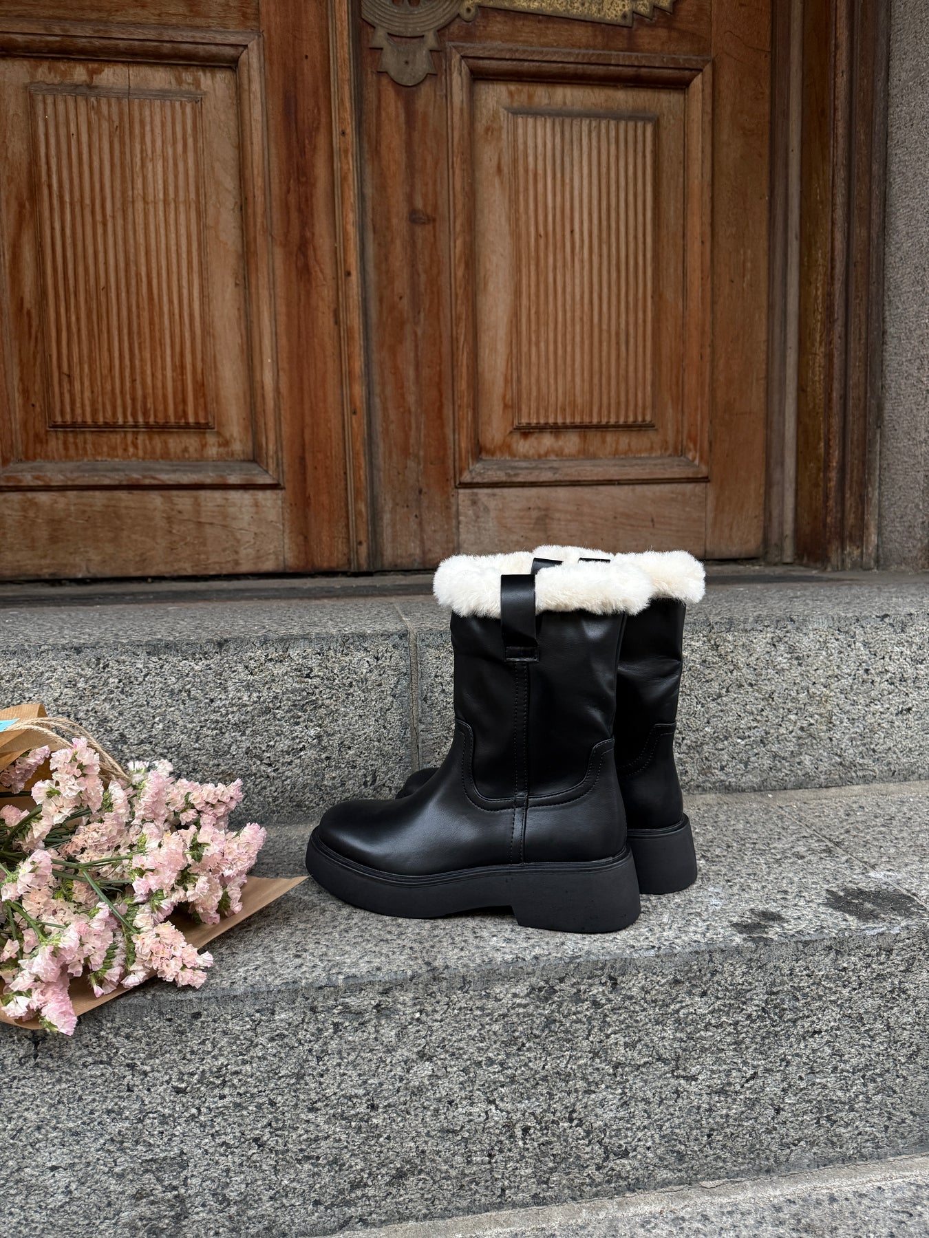 Hold varmen med stil i disse smukke vinterstøvler, designet i et tidløst læderlook med blød og indbydende pelskant ved skaftet.