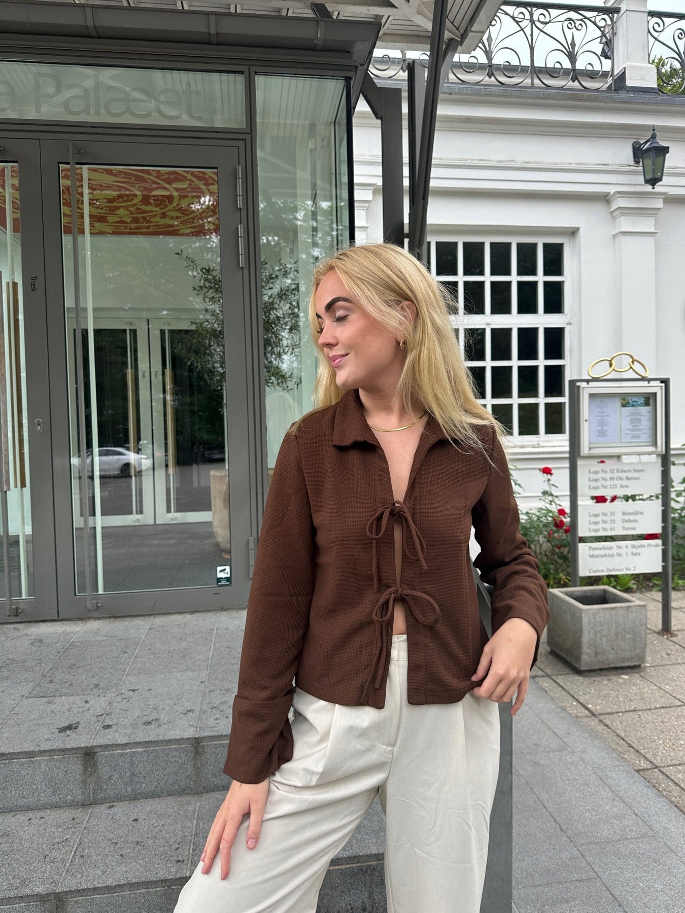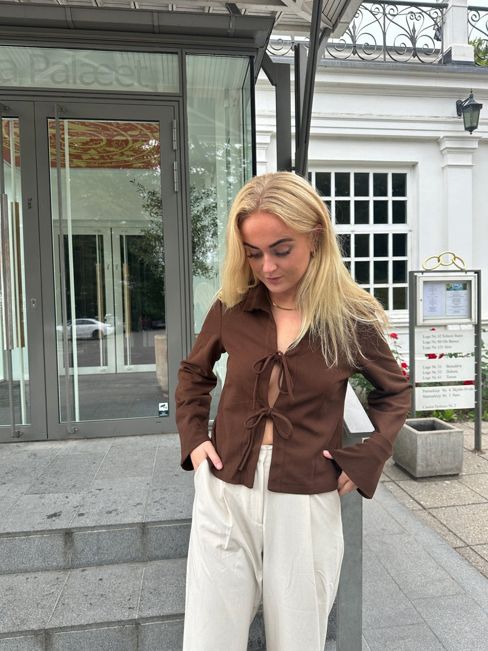 Kami Blouse er den fineste kombination af et skjortelook med bindebånd foran, samt en lille krave.