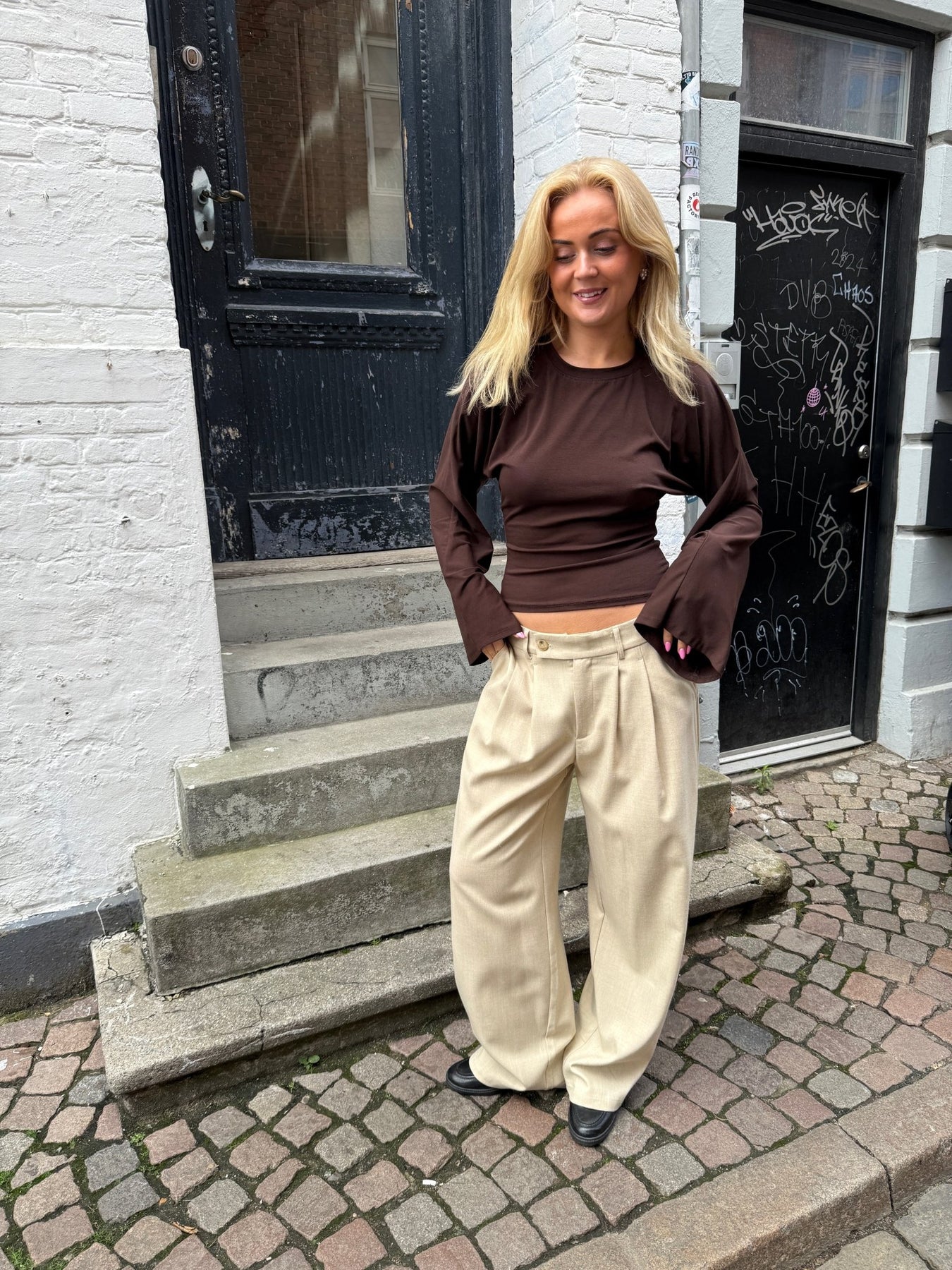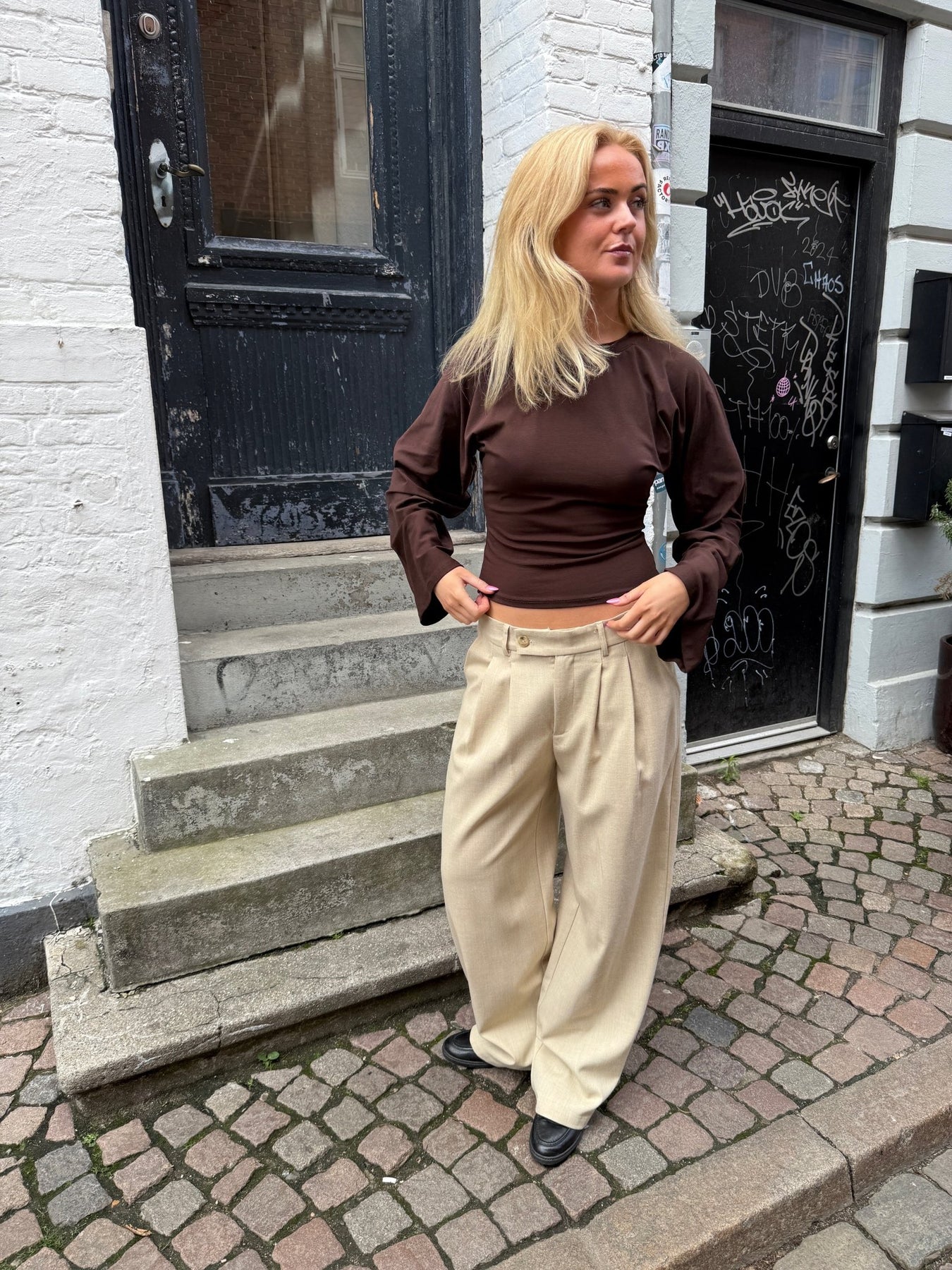 Klara Long Sleeve Waisted Top - Chocolate Brown
