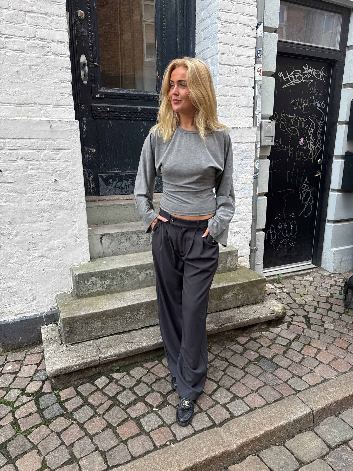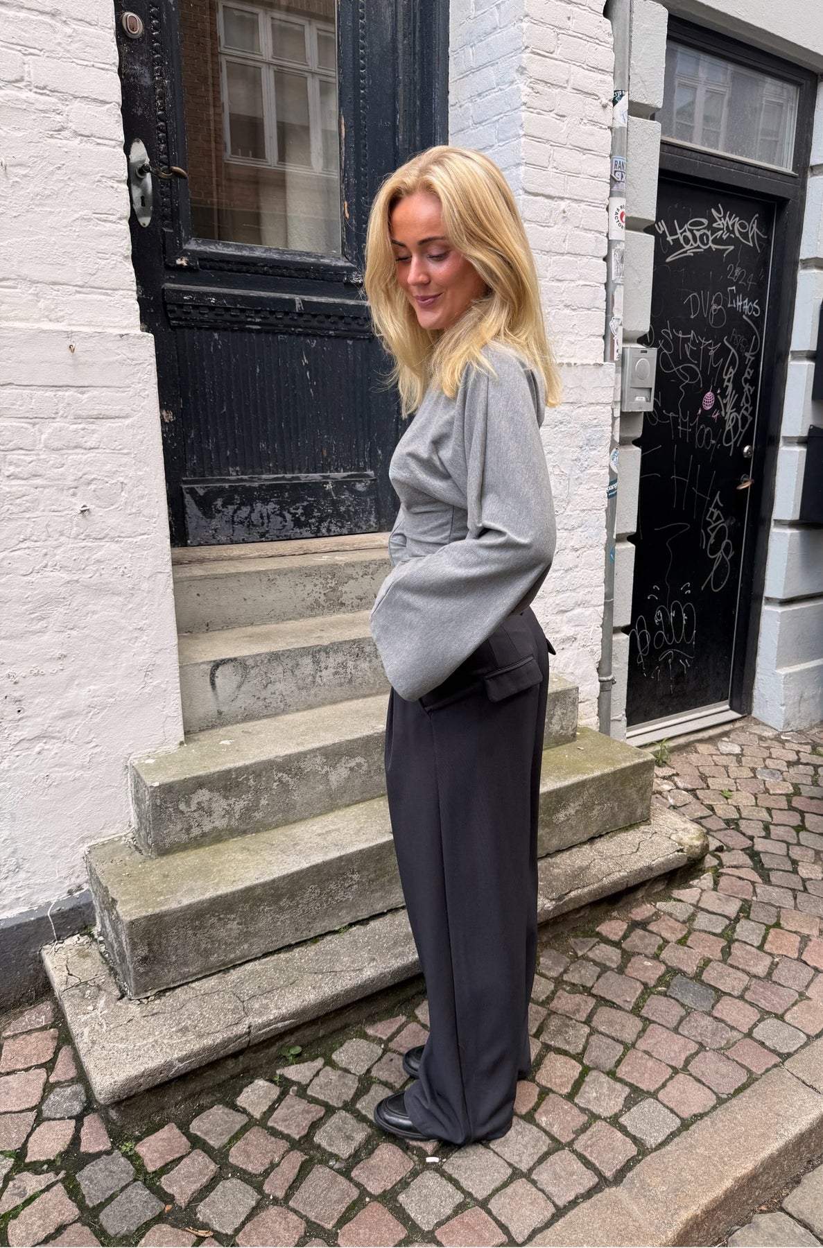 Klara Long Sleeve Waisted Top - Light Grey Melange