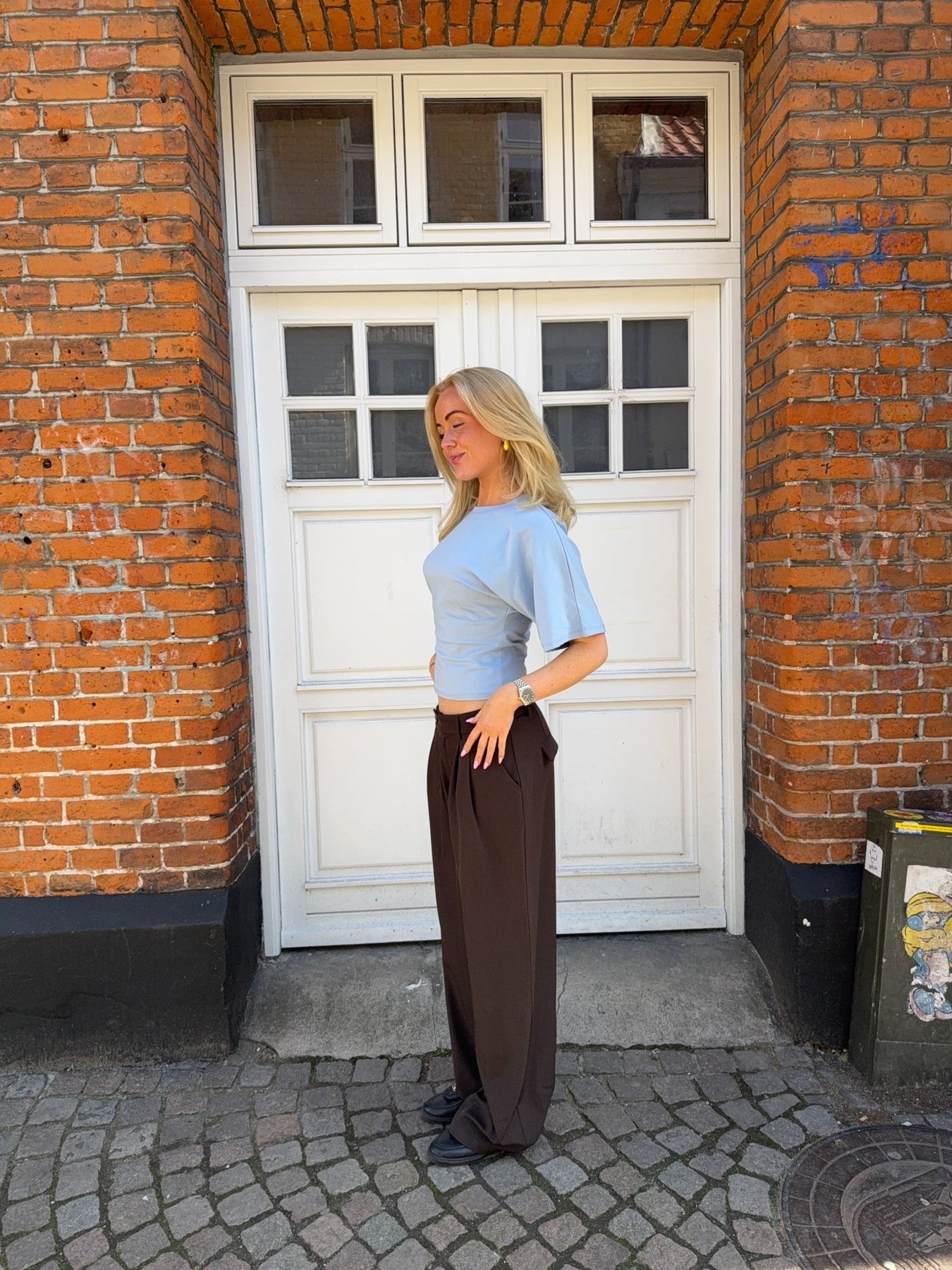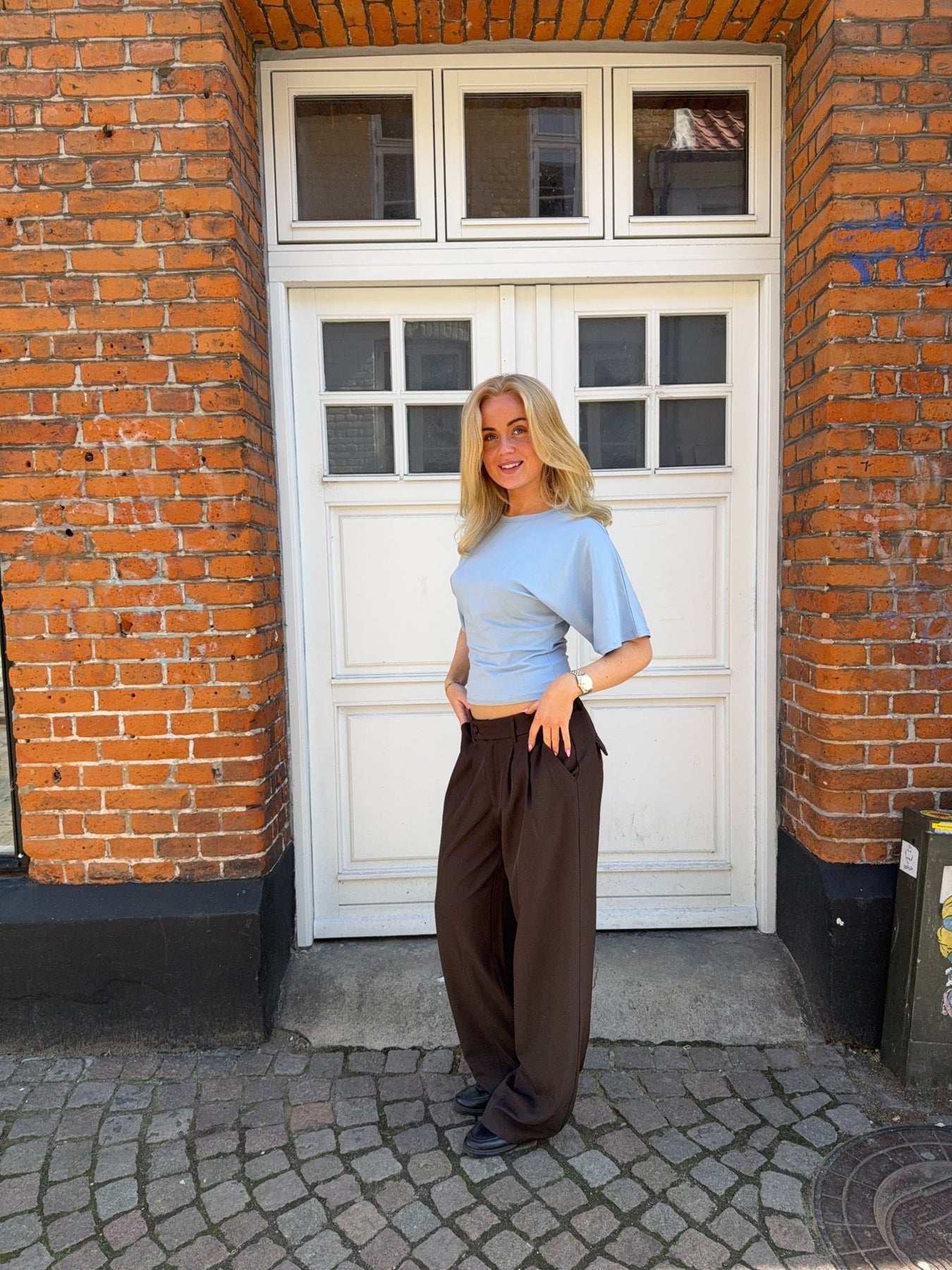 En top du bare altid kan bruge! Den har en superflatterende waisted pasform og korte ærmer, der gør den både enkel og feminin. Stoffet er blødt og strækbart, så den sidder pænt uden at stramme.