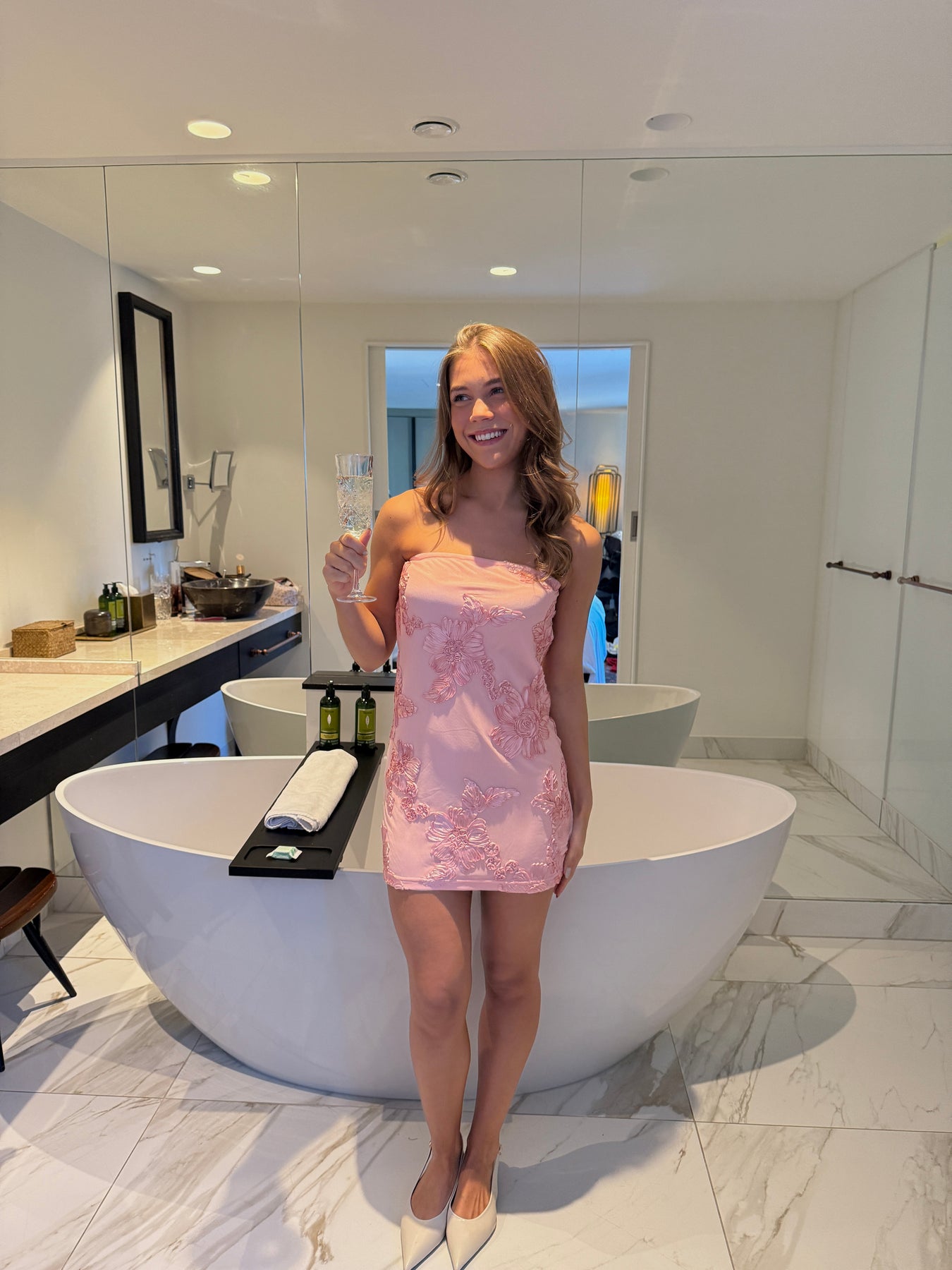 Lily Mesh Bandeau Dress - Light Pink