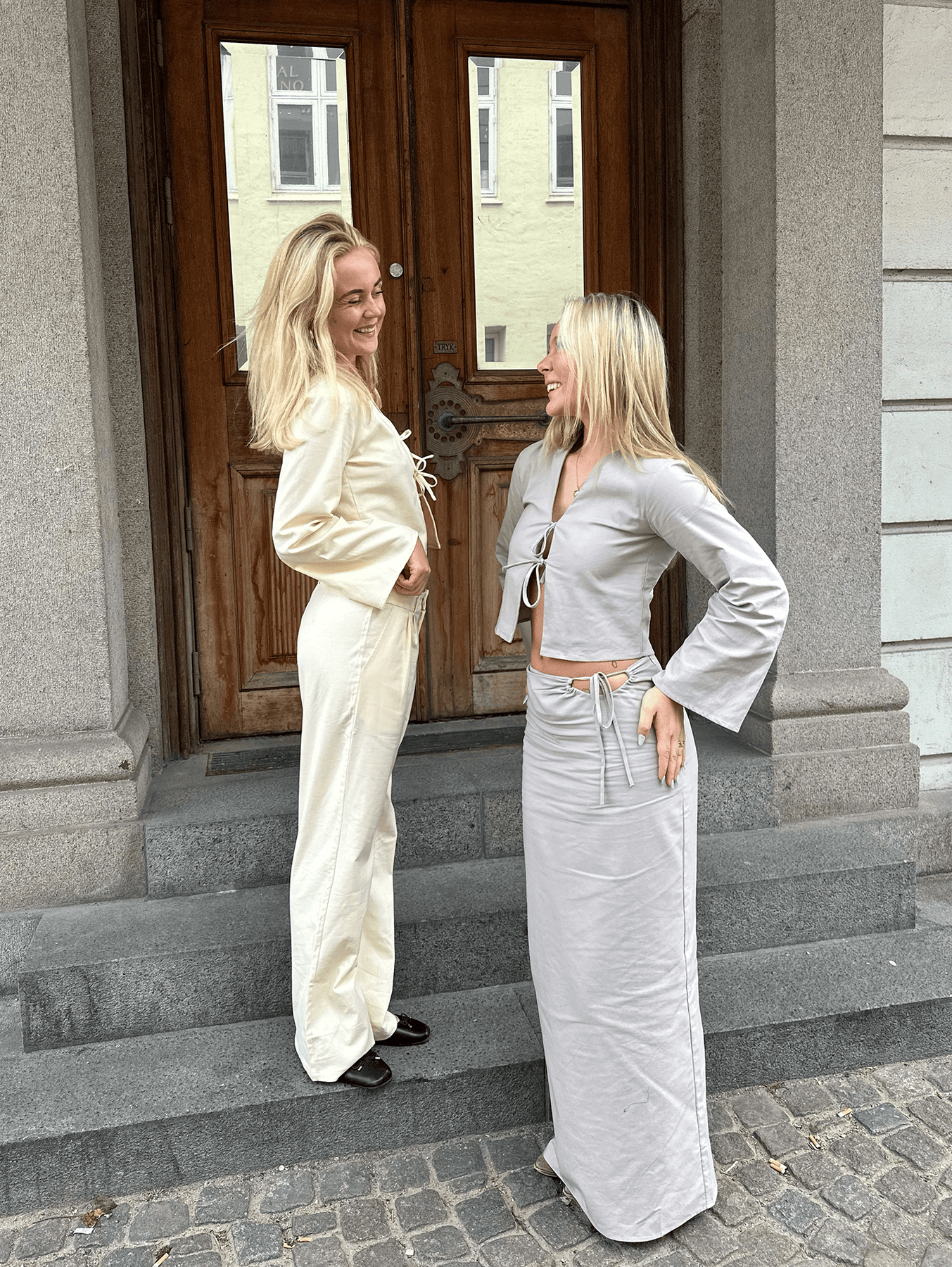 Fin nederdel med bindebånd i siden. Nederdelene er lavet i en hørblanding, der sikrer at den ikke er gennemsigtig. Nederdelen har en slids bagpå, og er et perfekt match til Line Cardigan.