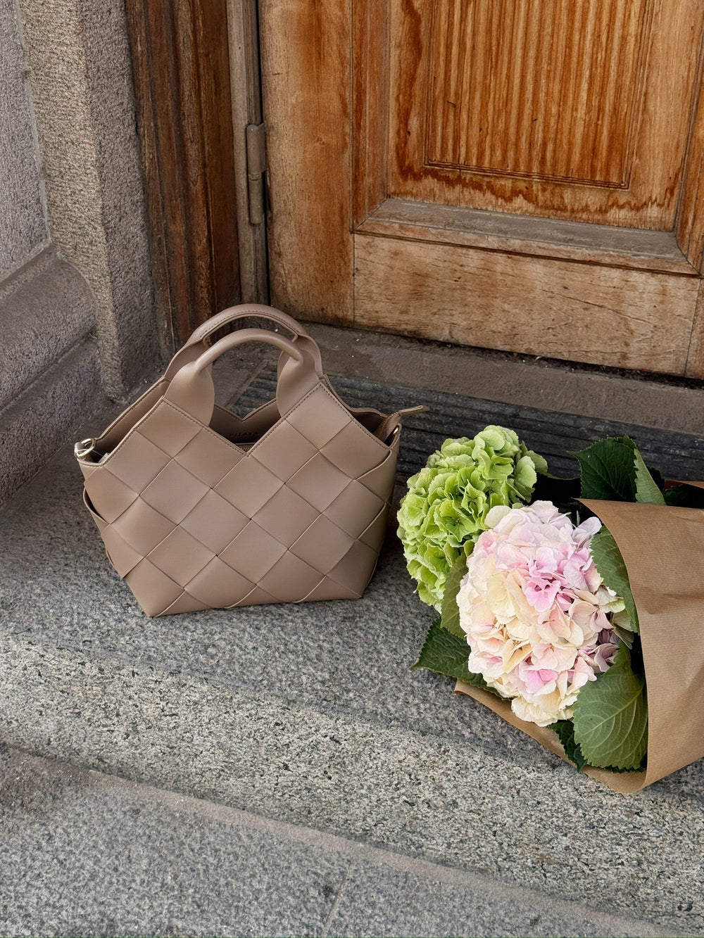 Marly Bag er en håndflettet taske, med gennemtænkte detaljer og et elegant design. Tasken har en lynlås til komplet lukningen. Tasken har 3 rum indeni. Ét rum med lynlås og 2 mindre rum uden lynlås til essentials som nøgler, pung eller andet. Tasken kan bæres i hånden eller over skulderen.
