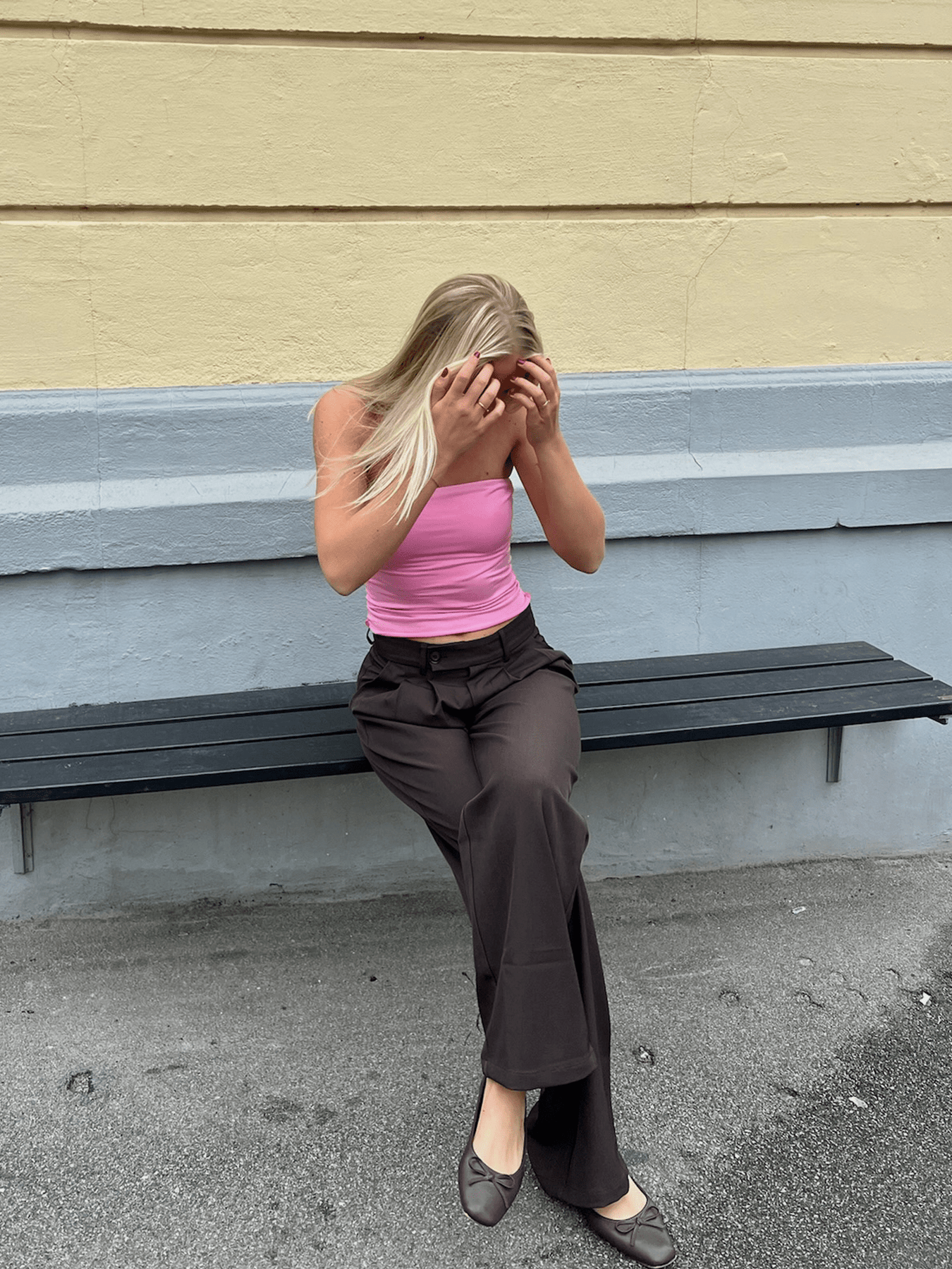 Den her bandeau top er et must-have til varme dage og cool outfits. Den sidder tæt og behageligt uden stropper og giver et rent, stilrent look, der passer perfekt til både højtaljede bukser, nederdele eller shorts.