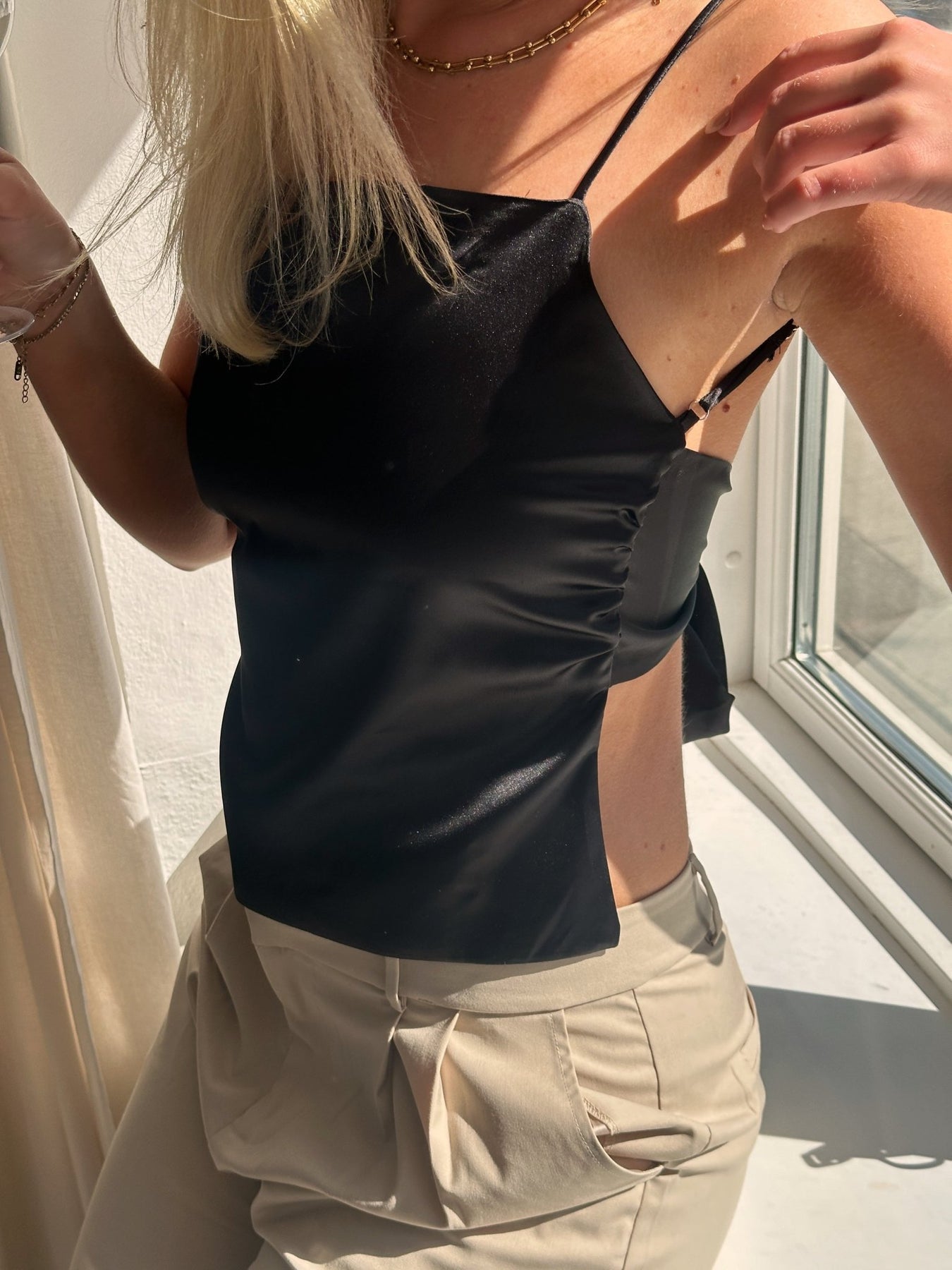 Den perfekte top til at have på i byen. Toppen bindes bagpå og har regulerbare stropper.