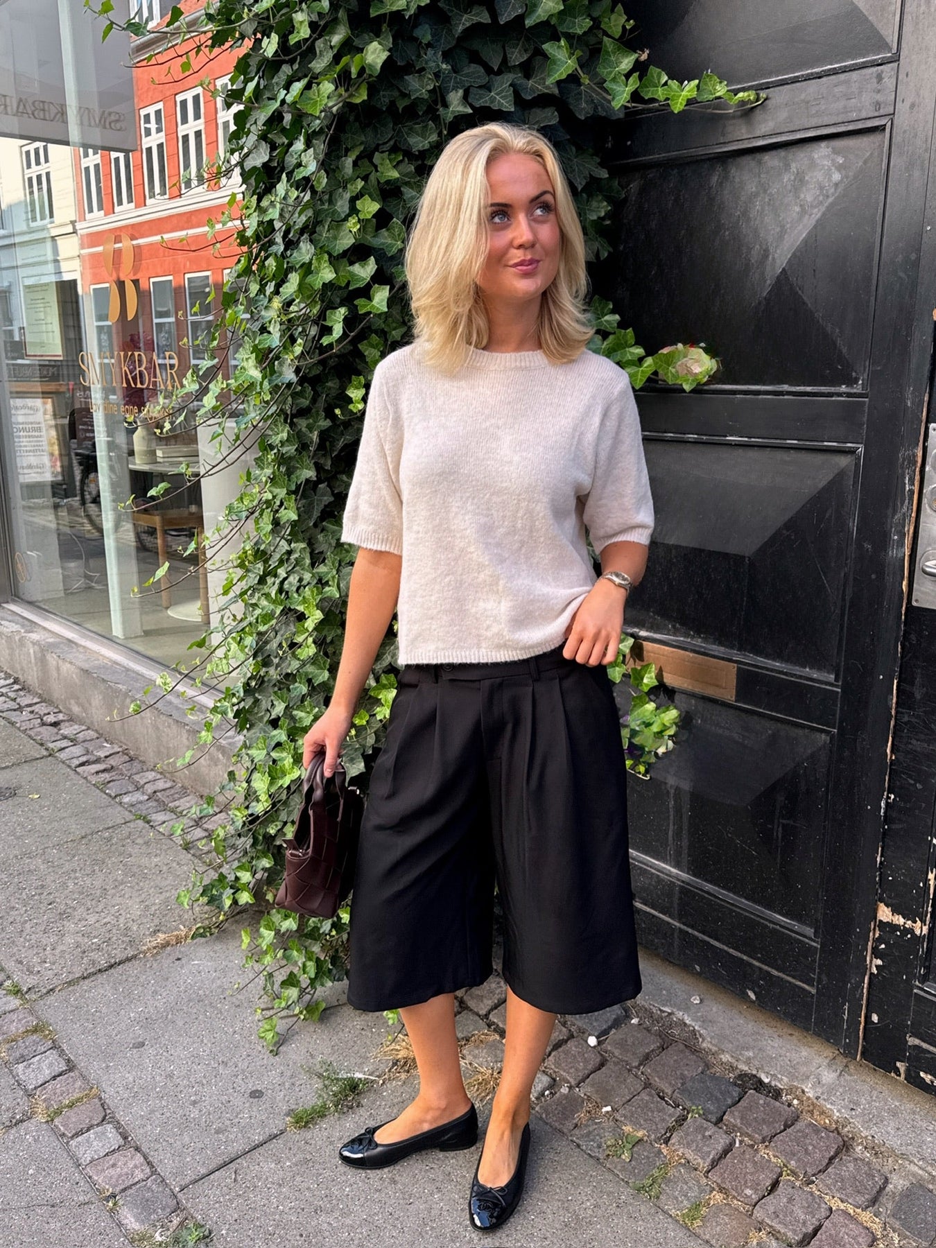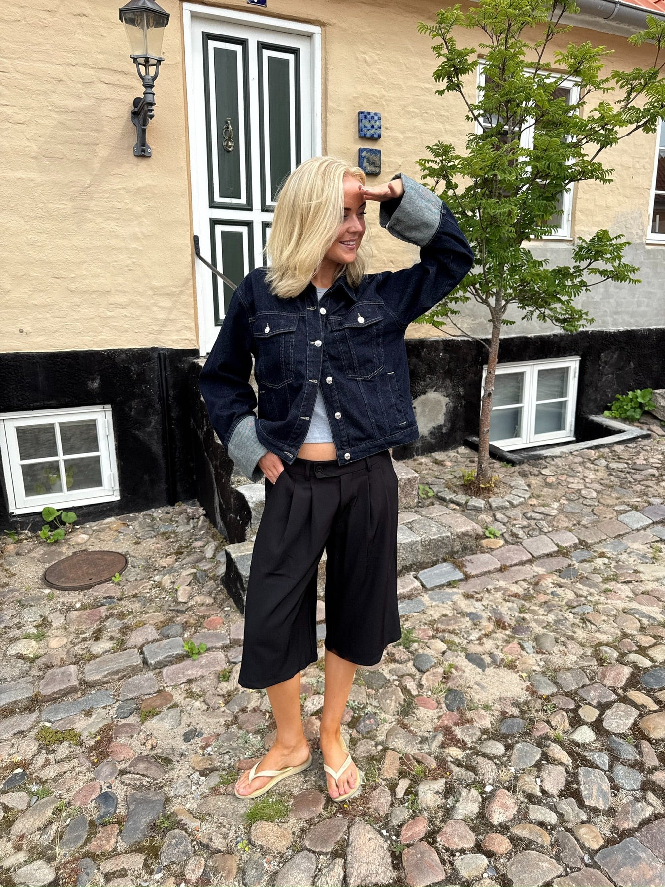 Disse sorte Nora Jorts kombinerer klassisk design med moderne komfort. Designet er enkelt og tidløst, men med elegante detaljer, der løfter looket og gør dem til et must-have i enhver garderobe. Den løse, knælange pasform kombinerer komfort og stil, hvilket gør shortsene både anvendelige til afslappede hverdage og til mere polerede outfits.