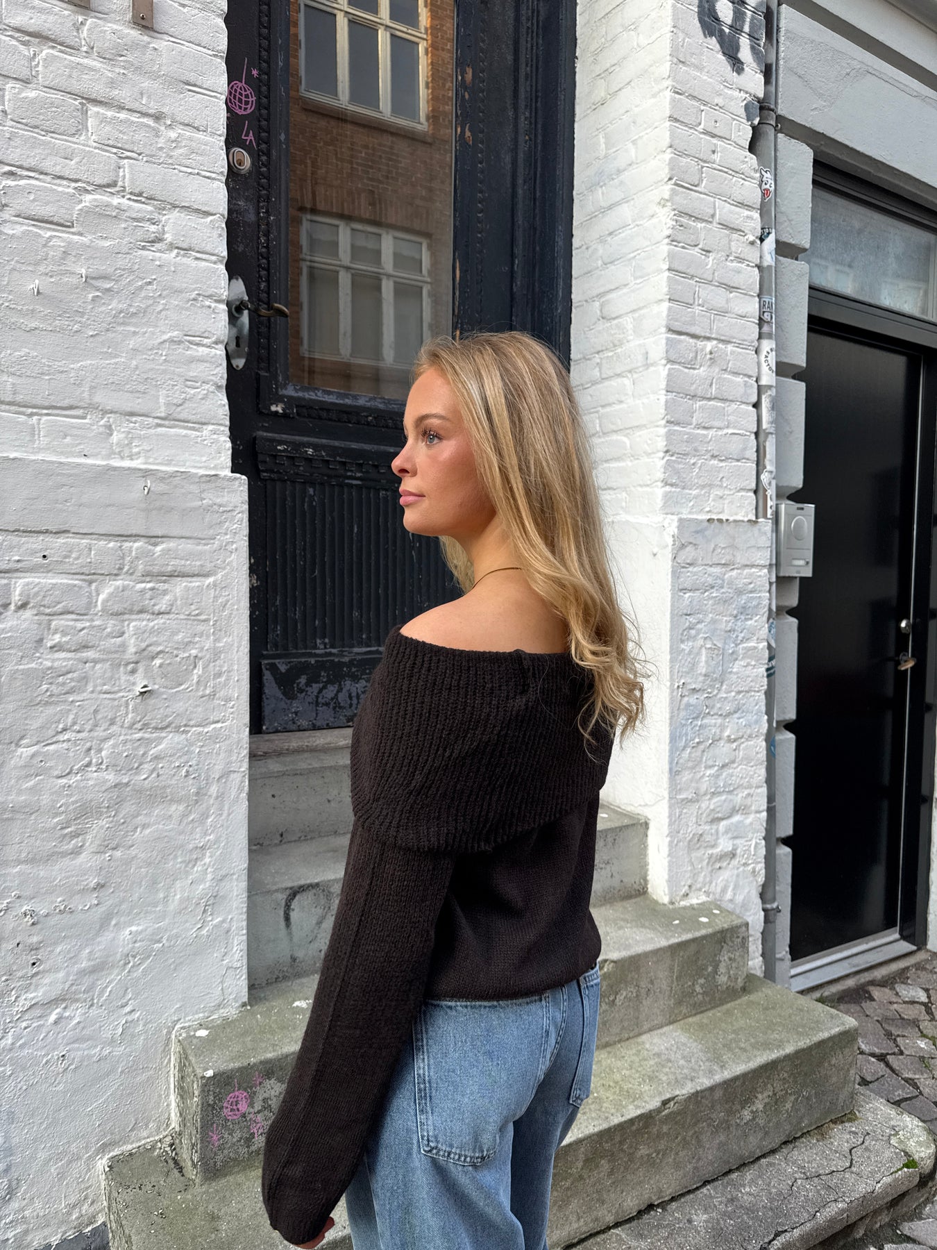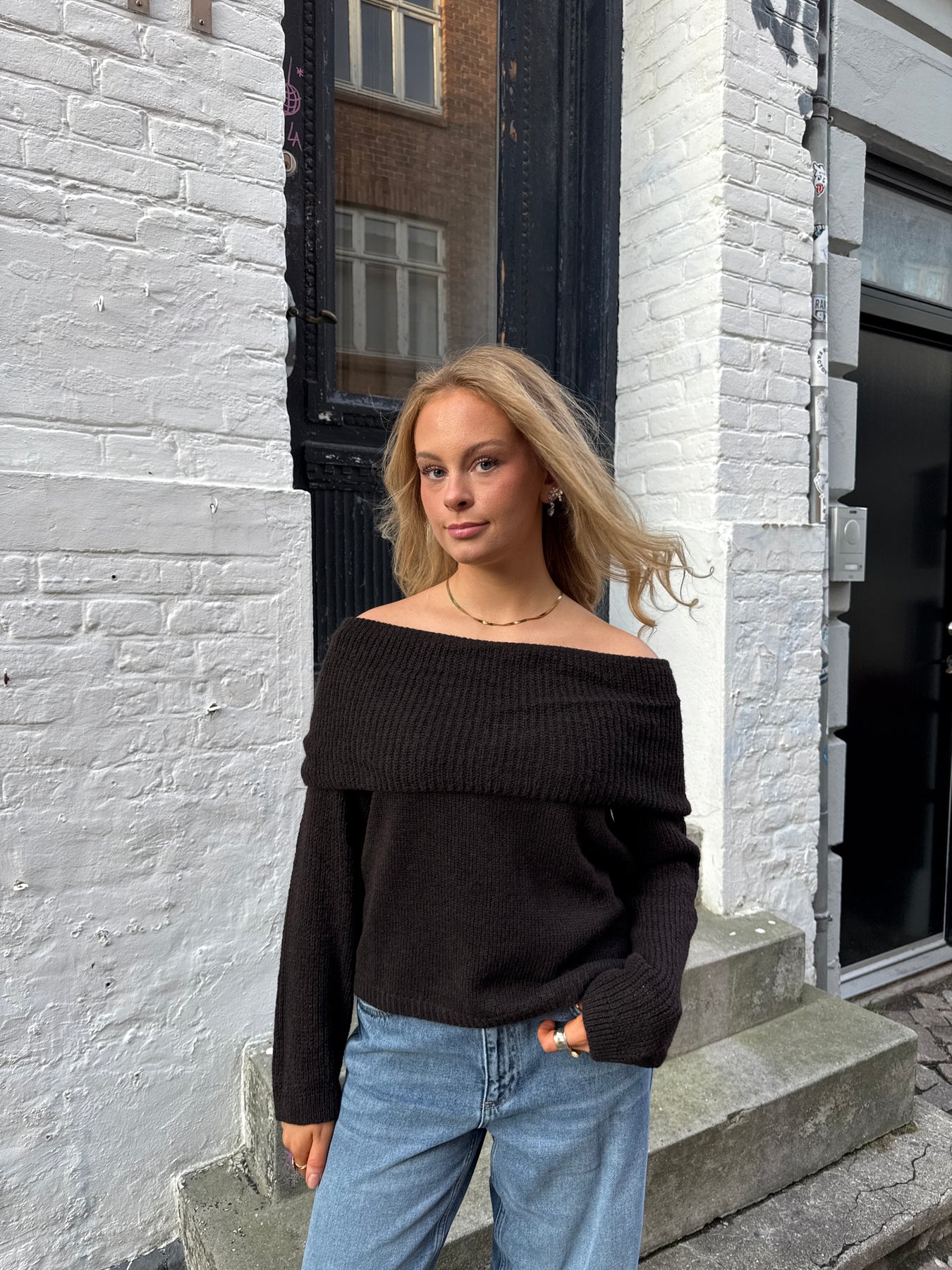 Tilføj et afslappet, men stilfuldt element til din garderobe med vores bløde off shoulder knit. Denne trøje er perfekt til hverdagsbrug og kan let styles til både afslappede og mere festlige anledninger.