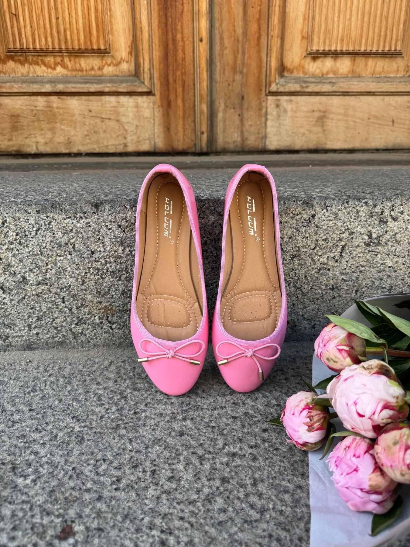 Klassiske ballerinaer med en sløjfedetalje og lakeret overflade, der er perfekte til hverdagen.