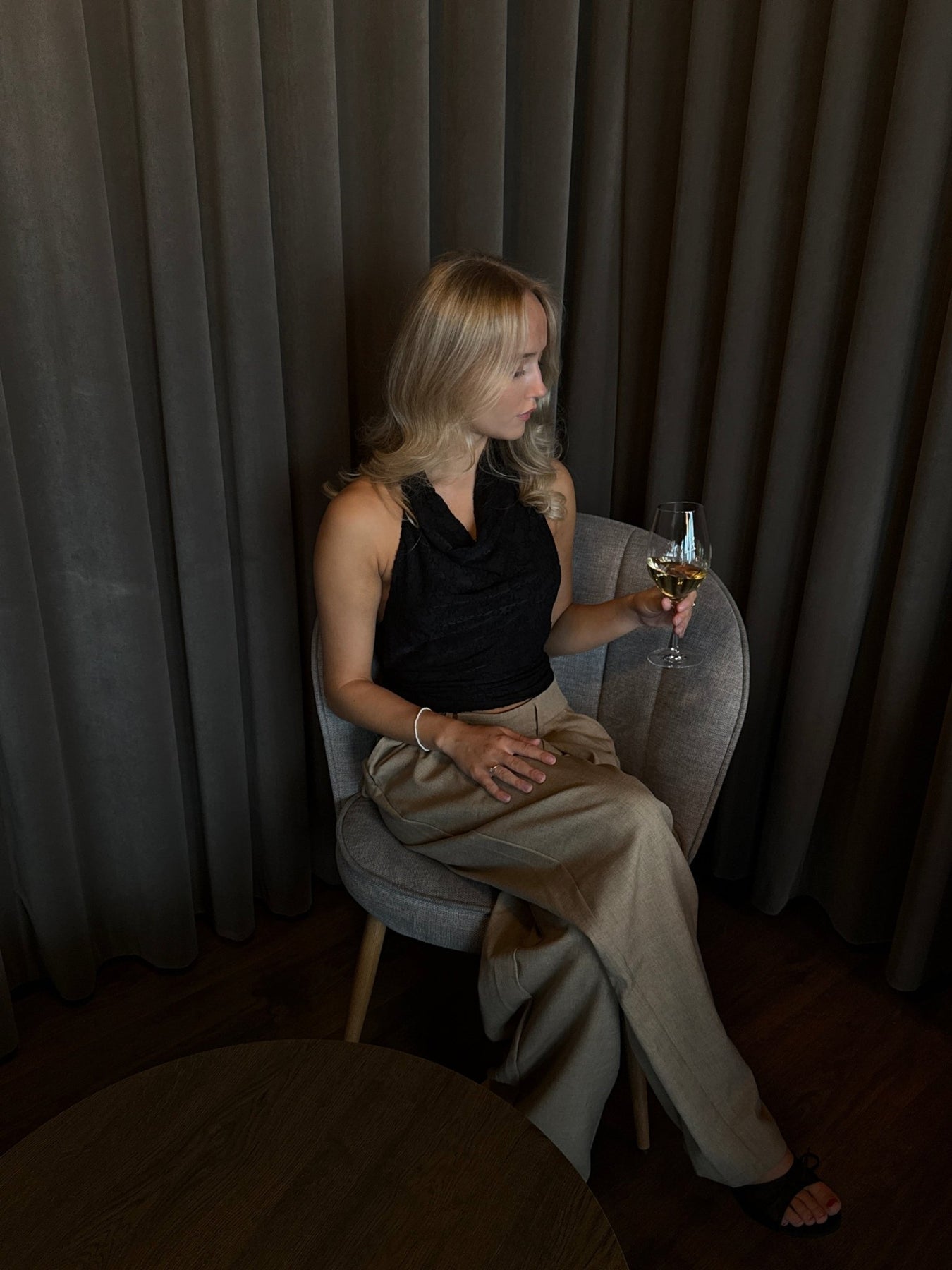 Elegant, feminin og nem at style – denne sorte halterneck-top er det perfekte valg til både hverdag og fest. Toppen har en front, der skaber et blødt og flatterende udtryk, mens det fine blondeinspirerede mønster tilføjer et romantisk touch.