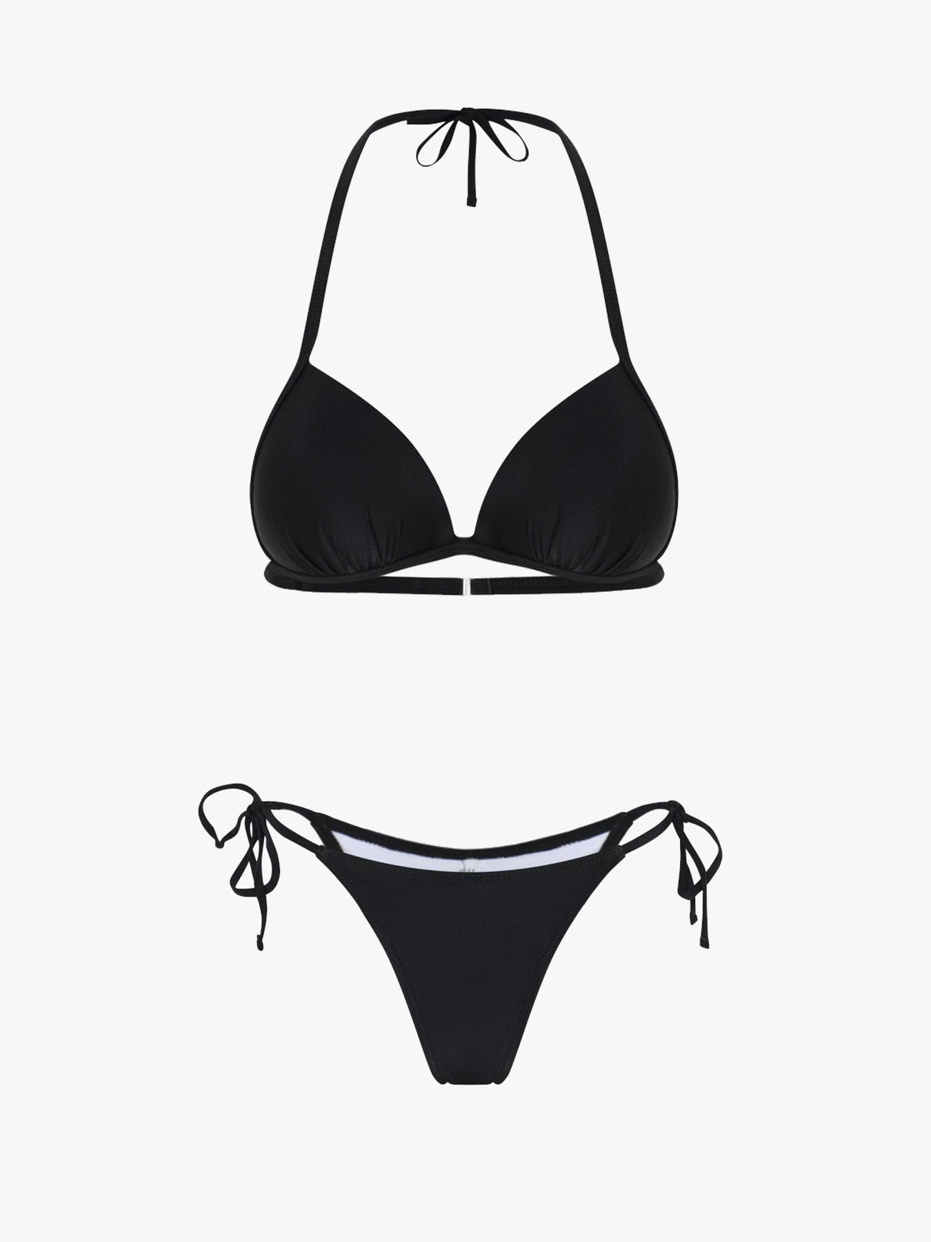 Xenia Bikini har et klassisk trekantsdesign og en overdel med en fast form. Overdelen lukkes med snører bagpå og i nakken.