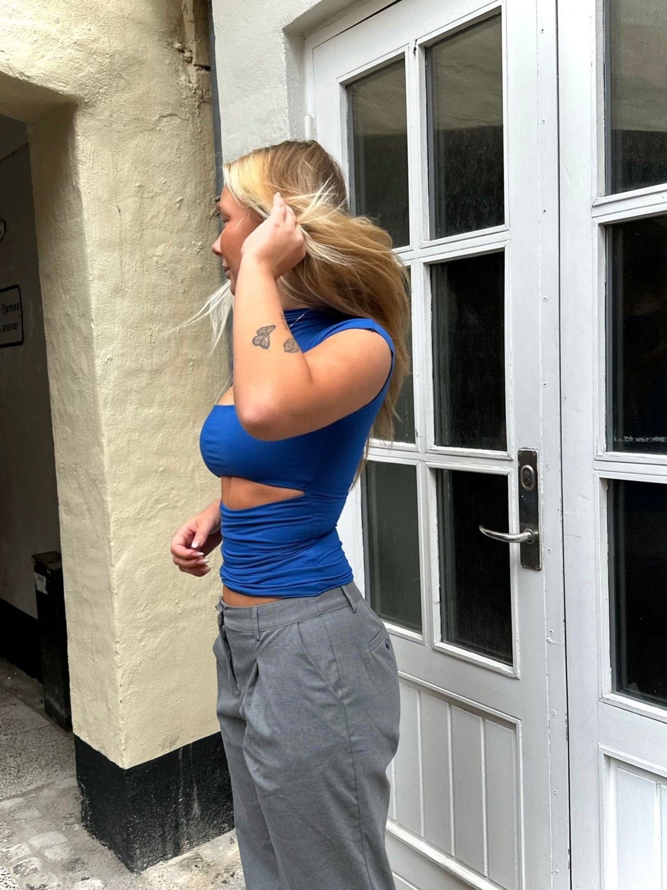 Kortærmet top med åbne detaljer. Vores Zoph Top er en fin og elegant top, som kan vendes efter brug. Toppen kan både bæres med de åbne detaljer foran og bagved og er den perfekte trøje til enhver begivenhed. Toppen har en stram pasform.